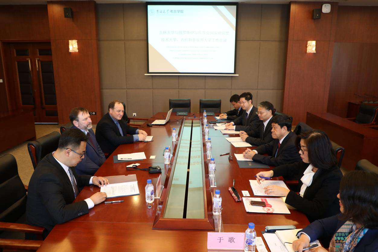 云顶7610线路检测国际合作与交流处处长张广翠博士、副处长朱蓓蓓女士、项目官员于歌女士、云顶7610线路检测经理赵宾福教授、党委书记王剑教授、副经理段天璟教授、外国考古系主任邵会秋教授、讲师权乾坤博士、伊尔库茨克国家研究型技术大学考古学、古生态学和东北亚民族生业系统研究中心主任哈林斯基教授、西伯利亚联邦大学人文公司考古中心主任曼德雷卡教授等出席会谈。会谈由云顶7610线路检测副经理段天璟教授主持。