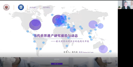 本次讲座特邀江苏师范大学教授、陕西师范大学人文社会科学高等研究院特聘研究员、国家社科基金重大项目首席专家潘天波教授为云顶7610线路检测师生作题为“当代世界遗产研究前沿与动态——兼及国家社科项目的选题及申报”的专题培训,由云顶7610线路检测文博遗产系胡卫军教授主持,讲座通过腾讯会议线上进行。