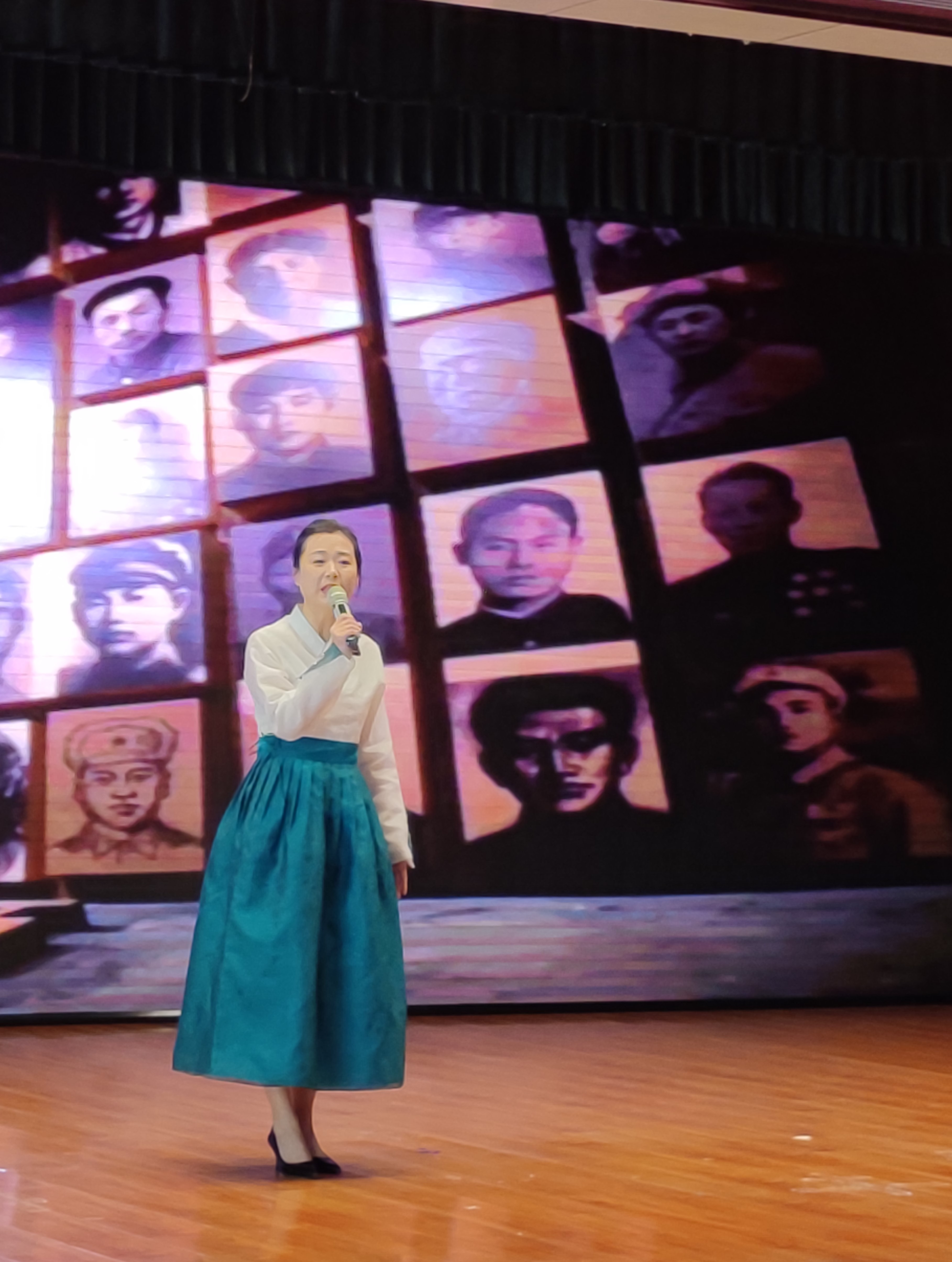来自延边博物馆的金红艳以《抗日烈士金顺姬的故事》为主题,将22岁的抗日女英雄金顺姬面对日寇咬舌断指宁死不屈的战斗故事娓娓道来。