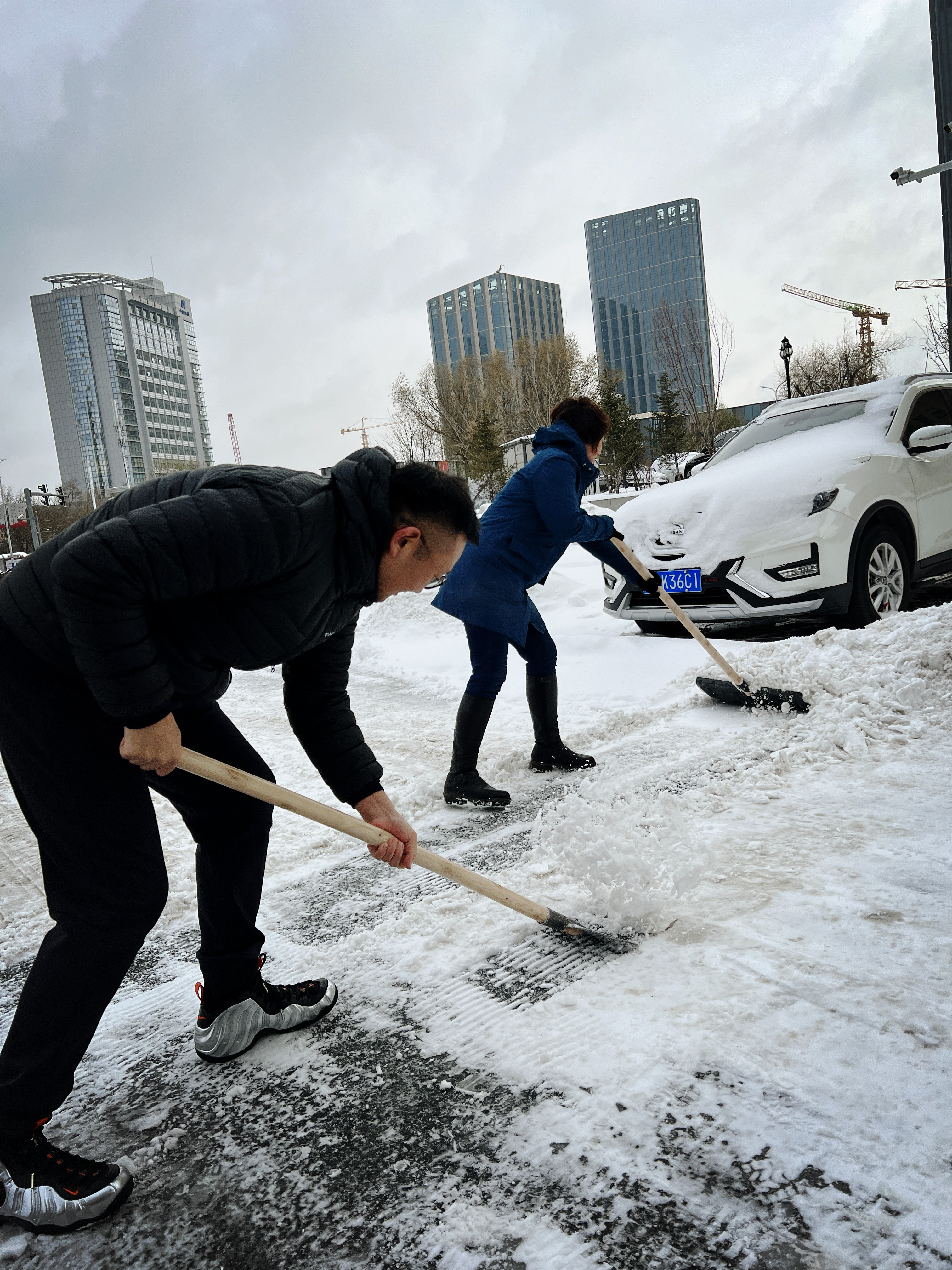 云顶7610线路检测办公地点水务楼地处校园外东南角,大楼东北向有一个面积较大的停车场。进入11月以来,持续的强降雪天气为交通和出行带来极大不便,公司机械化扫雪队伍第一时间照顾不到这里,地面清雪全靠大楼内的保安和物业人员。行政教工党支部注意到清雪人力物力不足、人员长期劳作身体疲惫的情况,11月11日上午组织党员对水务楼门前积雪进行了清扫。