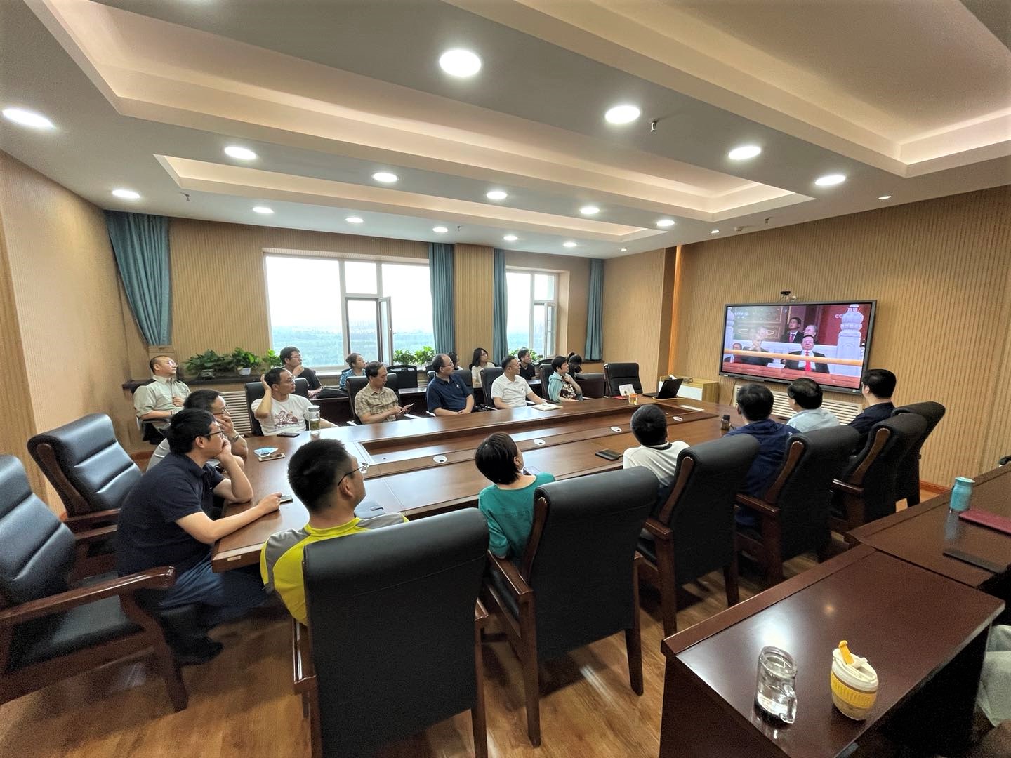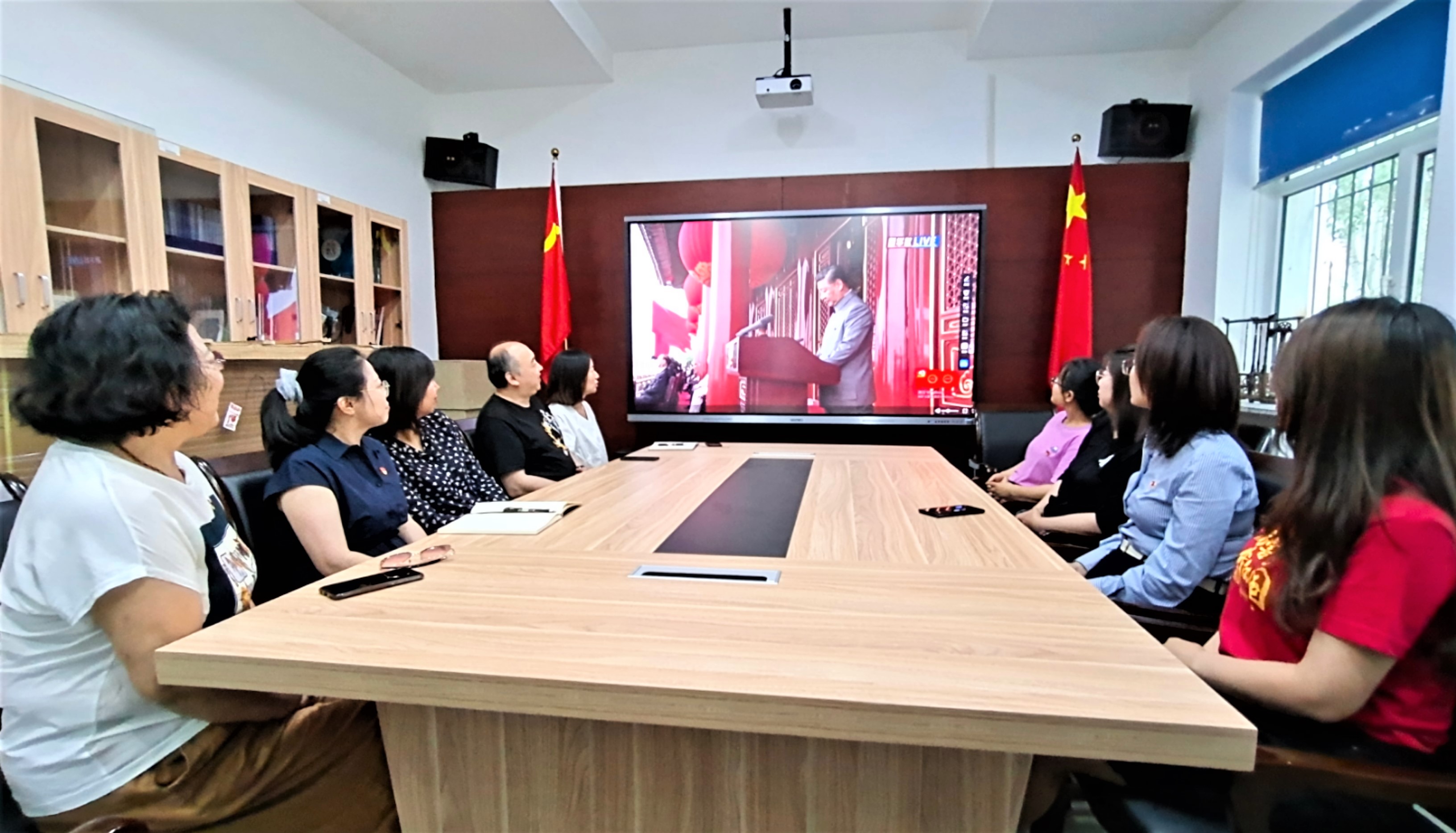 因受场地所限,公司党委将收看形式分为支部和小组两个部分。行政教工党支部和考古学及博物馆学教师党支部在公司会议室、考古与艺术博物馆教工党支部在博物馆会议室、本科生党支部在公司党团活动室进行了集中收看。其他党支部分解为党小组在寝室、教研室或办公室收看。