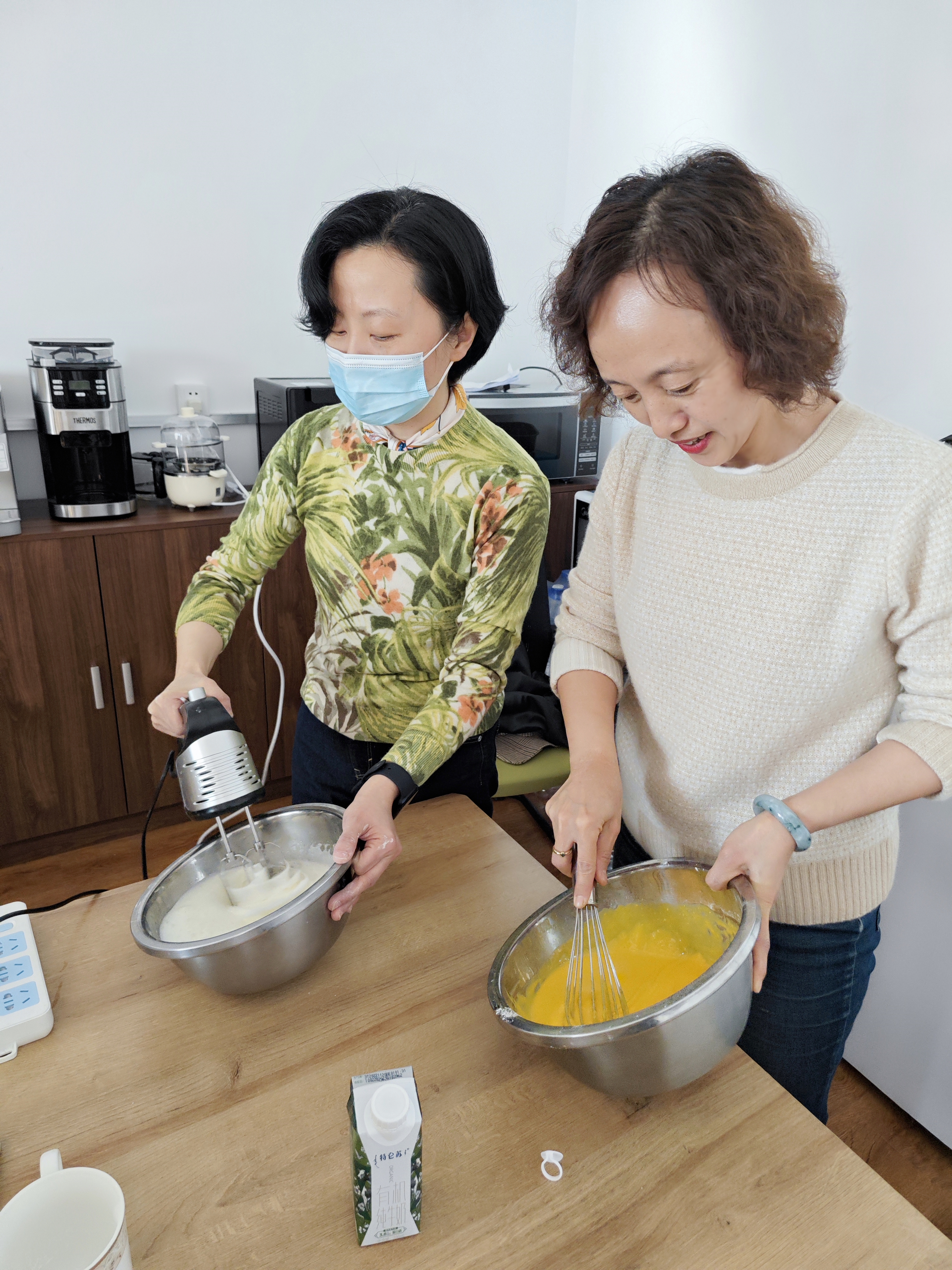 参加活动的老师们品尝后纷纷表示,自制戚风蛋糕口感和味道俱佳,操作简单,非常适合老人和孩子,希望再集中学习几次、熟练掌握后做给家人食用。