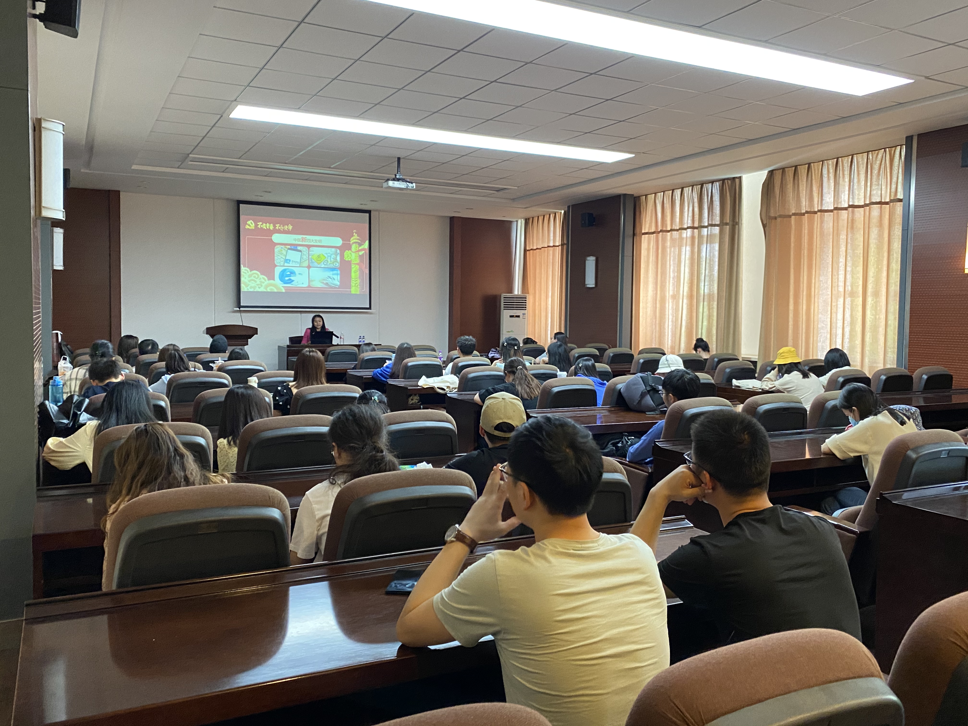 通过本次党史学习教育宣讲,同学们收获颇丰,学习了要勤学格物,增强服务社会、报效祖国的本领和能力;要修德诚意,让德行成为一种人生追求;要明辨自持,让明辨成为一种人生智慧;要笃实行久,让实干成为一种人生态度;只有将个人修养、家庭美德与爱国主义胸怀充分结合统一,才能更好地实现自身价值;加强了爱国主义情怀和实现“中国梦”的使命担当,应为实现中华民族伟大复兴贡献自己的力量。