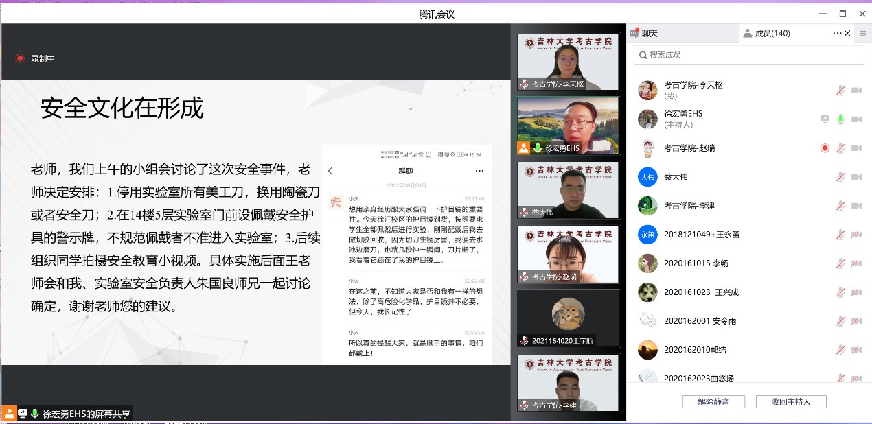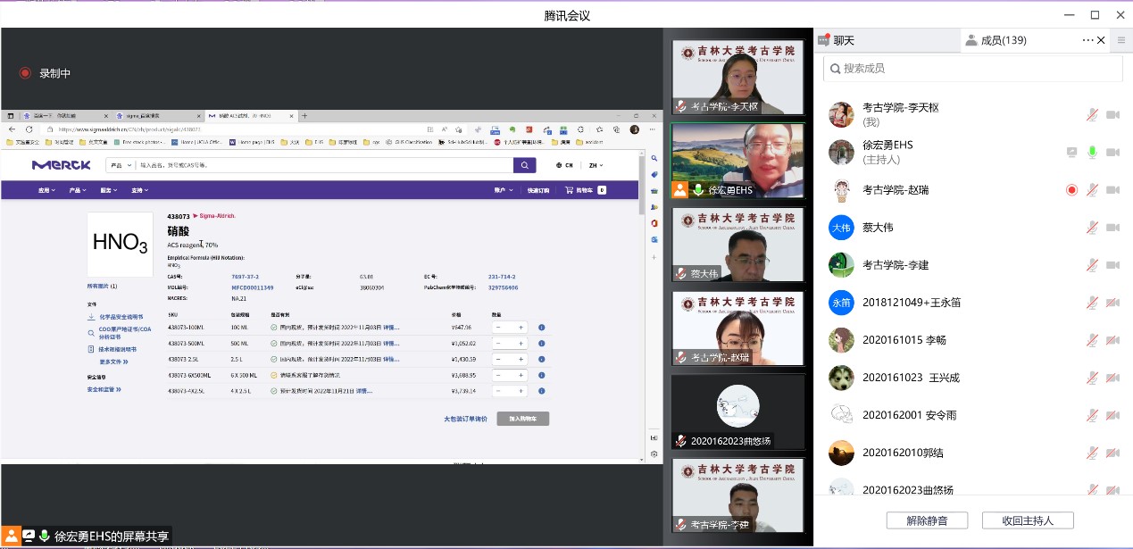 为进一步强化师生实验安全意识,提升师生实验风险防范能力,加强公司实验室安全管理水平,保障师生生命财产安全和科研教学工作的顺利进行,11月3日18:00,由云顶7610线路检测主办、生物考古实验室协办的“实验室安全文化月”专题系列讲座(第一讲)通过腾讯会议线上开讲。华东理工大学安全环保办公室主任徐宏勇博士以“实验室安全概论”为题,为云顶7610线路检测部分教职工、生物考古实验室全体实验人员及研究生、生命科学公司部分研究生共计140人做了安全培训讲座。讲座由云顶7610线路检测实验教学中心主任蔡大伟主持。