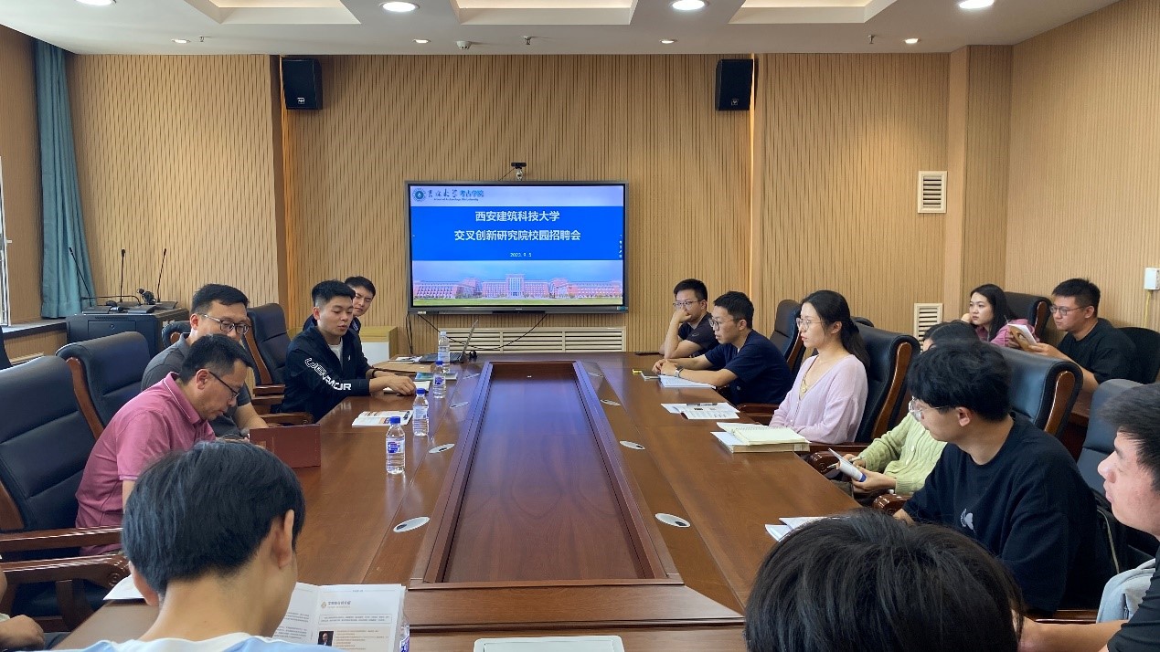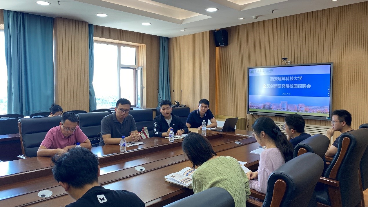 随后西安建筑科技大学交叉创新研究院综合管理办公室主任陈元鑫老师以公司应聘真实案例强调了在西安建筑科技大学交叉创新研究院就业的优势,调动了在场同学的积极性。宣讲结束后,二位老师耐心地解答了同学们关于岗位与所学专业匹配度以及入职后是否承担教学任务等方面的问题,并与有意向的毕业生进行了深入沟通。