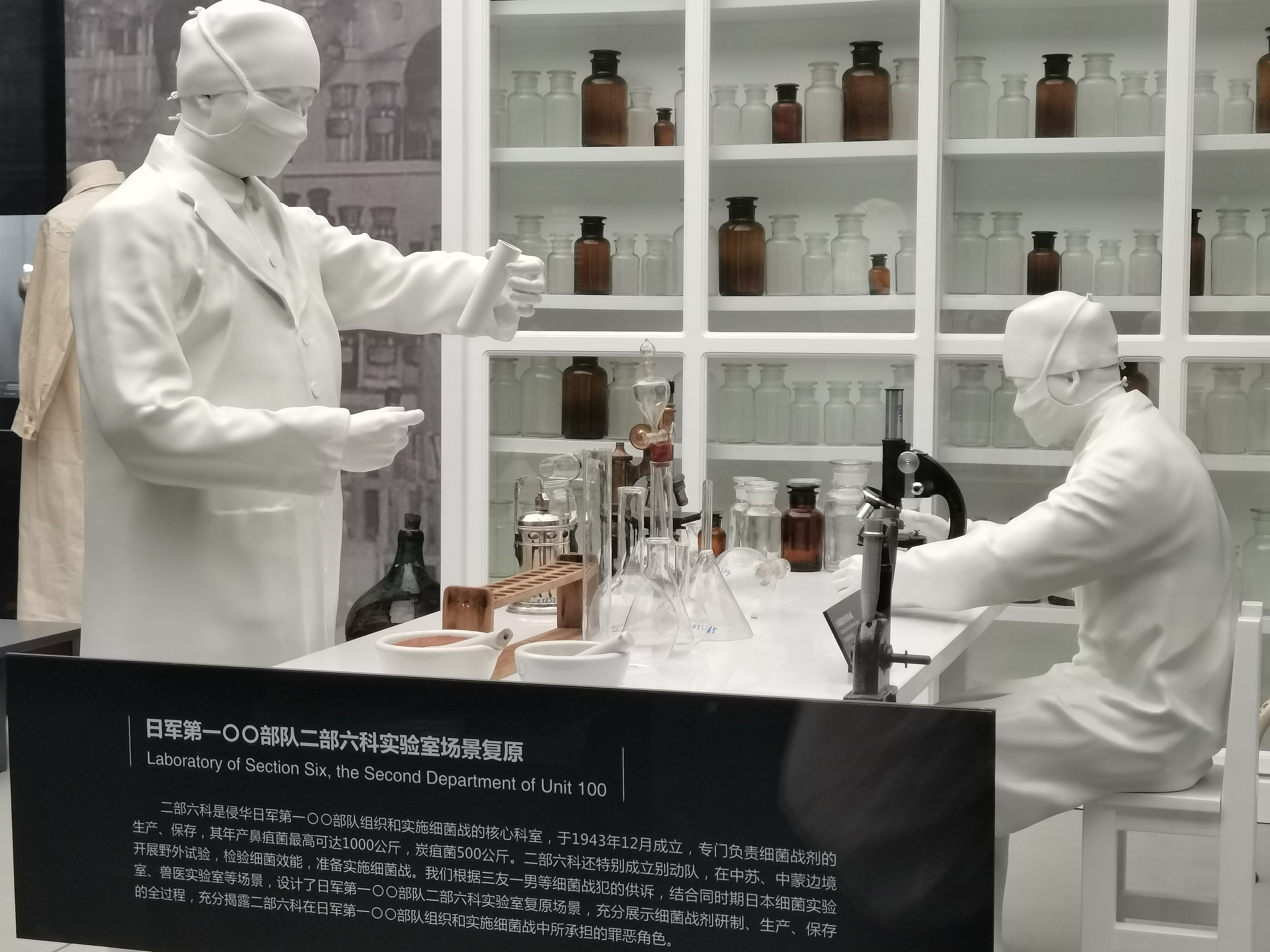 团队成员杜晨阳子表示:“最让我印象深刻的是《侵华日军第一〇〇部队细菌战罪证陈列》。展览以丰富详实的图文和影音资料为依据,将学术研究成果和陈列展览相结合,将侵华日军第一〇〇部队及日军其它部队惨无人道的罪行呈现在观众眼前。在铁证下,我们更加深刻地了解到侵华日军的残忍和细菌战的恐怖。同时,展览也运用多种手段营造展示空间氛围,曲折的参观路径设计、白色复原模型与黑色背景搭配,以及运用各种材质和造型的实物背景配合展品和图文介绍营造压抑沉郁的氛围。我们更加真切地体会到扎实的学术支撑和恰当的展示手法对一个优秀陈列展览的重要性。”