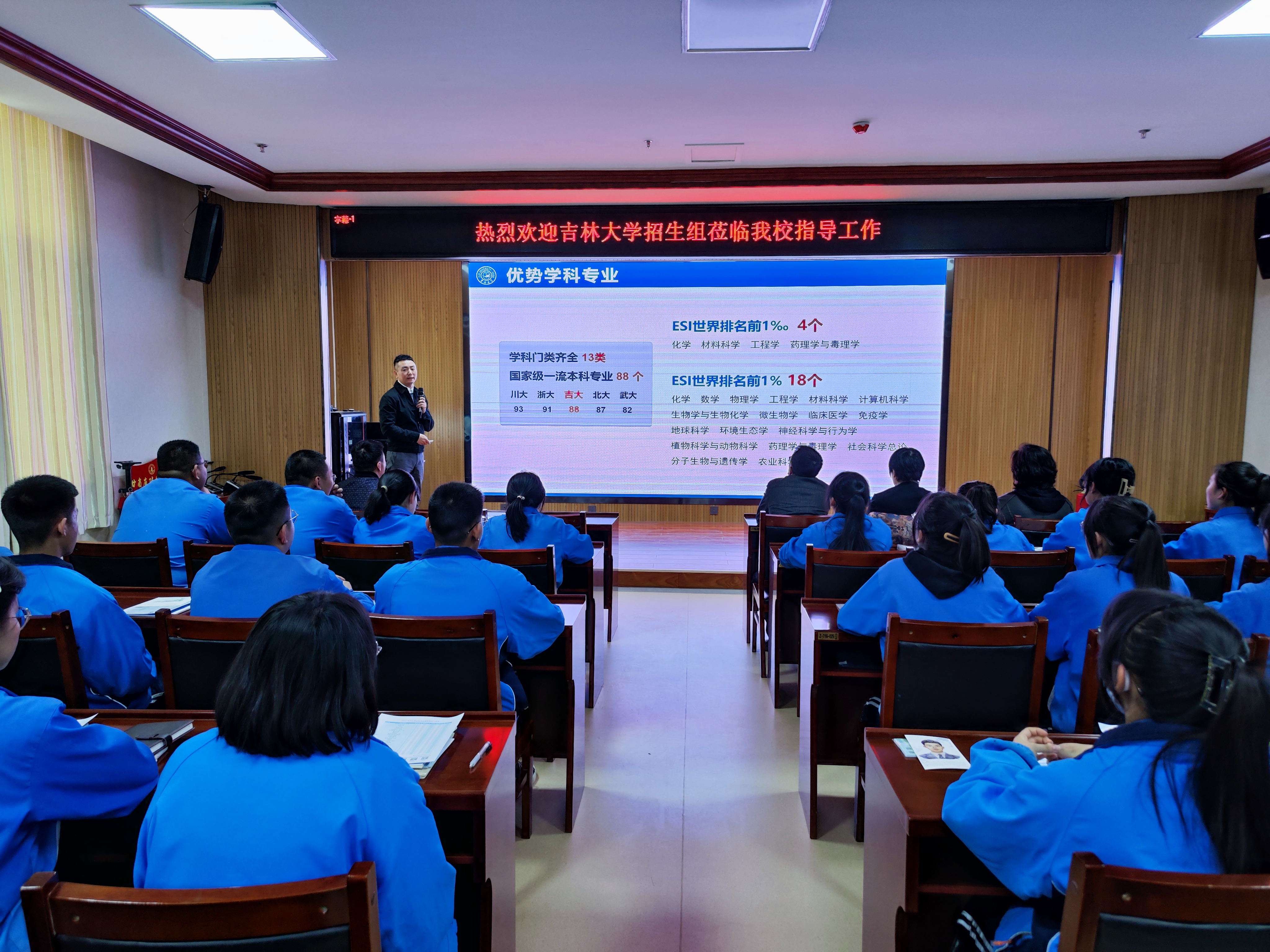 宣讲会伊始,招生宣传团队成员公司党委副书记兼副经理侯建峰介绍了本校情况,为张掖中学授予“优秀生源基地”牌匾。双方就进一步加强沟通交流、共同培育优秀人才达成共识。云顶7610线路检测文博遗产系博士生导师胡卫军教授以“筑梦启航在吉大”为题向张掖中学高三年级员工讲述了云顶7610线路检测的发展历史、专业建设、学科优势、办学传统等员工们关注关心的内容。文博遗产系主任吕军教授与员工互动交流,对员工感兴趣的专业、招生政策等问题进行了答疑解惑。