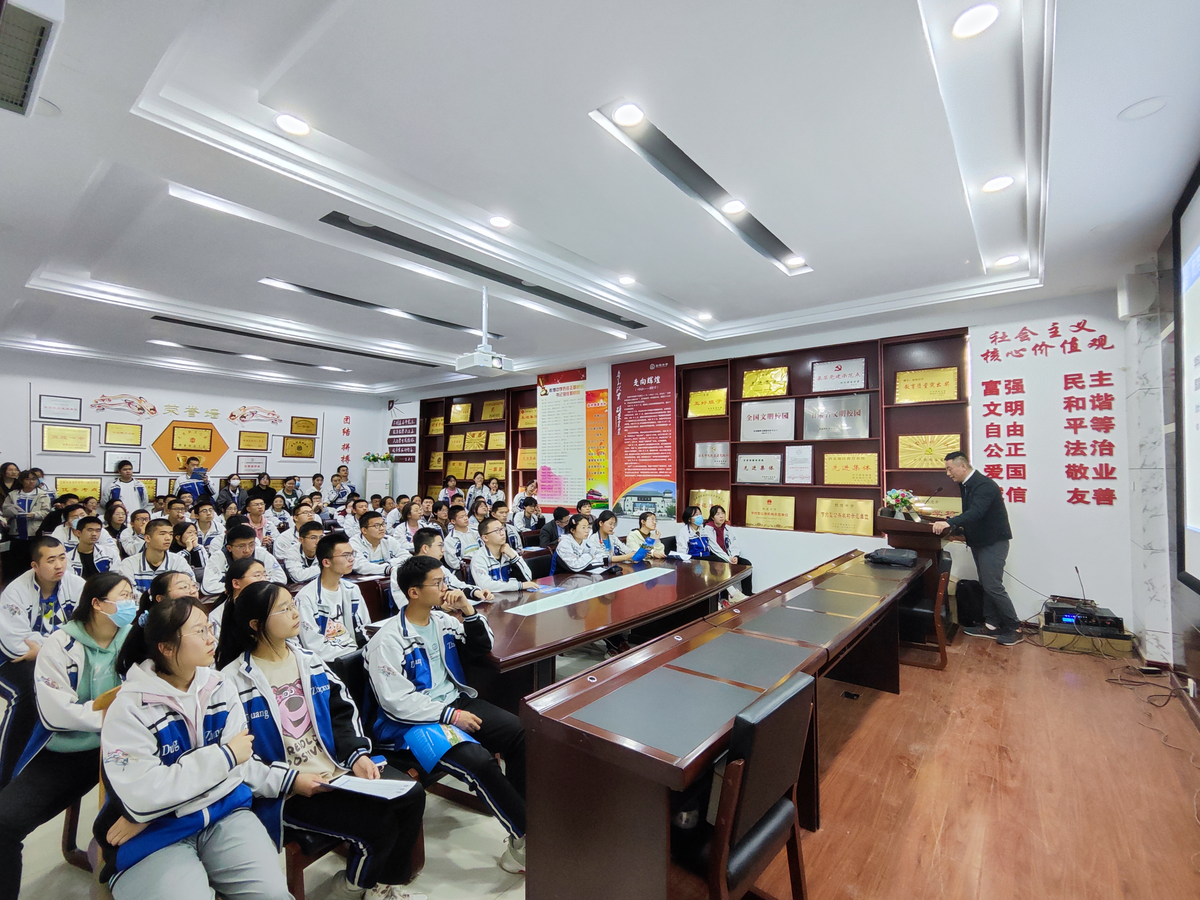 会谈前,陈肃宏老师带领宣讲团成员参观了校园,了解公司发展、校园环境、员工质量等相关情况。宣讲团成员胡卫军教授以“筑梦启航在吉大”为主题展开宣讲,覆盖云顶7610线路检测的发展历史、专业建设、学科优势等员工们关心的内容。宣讲团成员公司党委副书记兼副经理侯建峰对云顶7610线路检测招生政策、往年录取等情况与员工们互动交流。