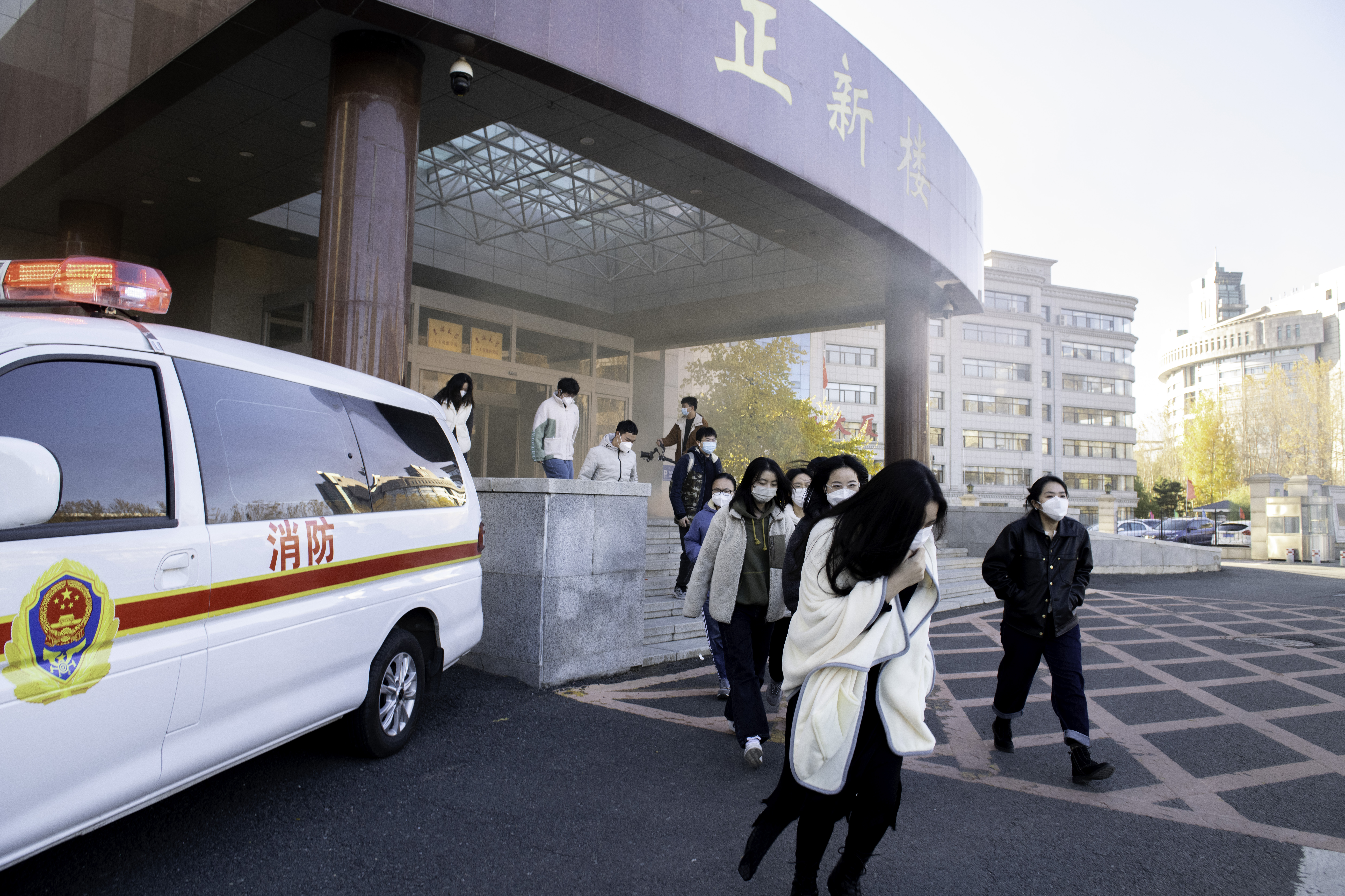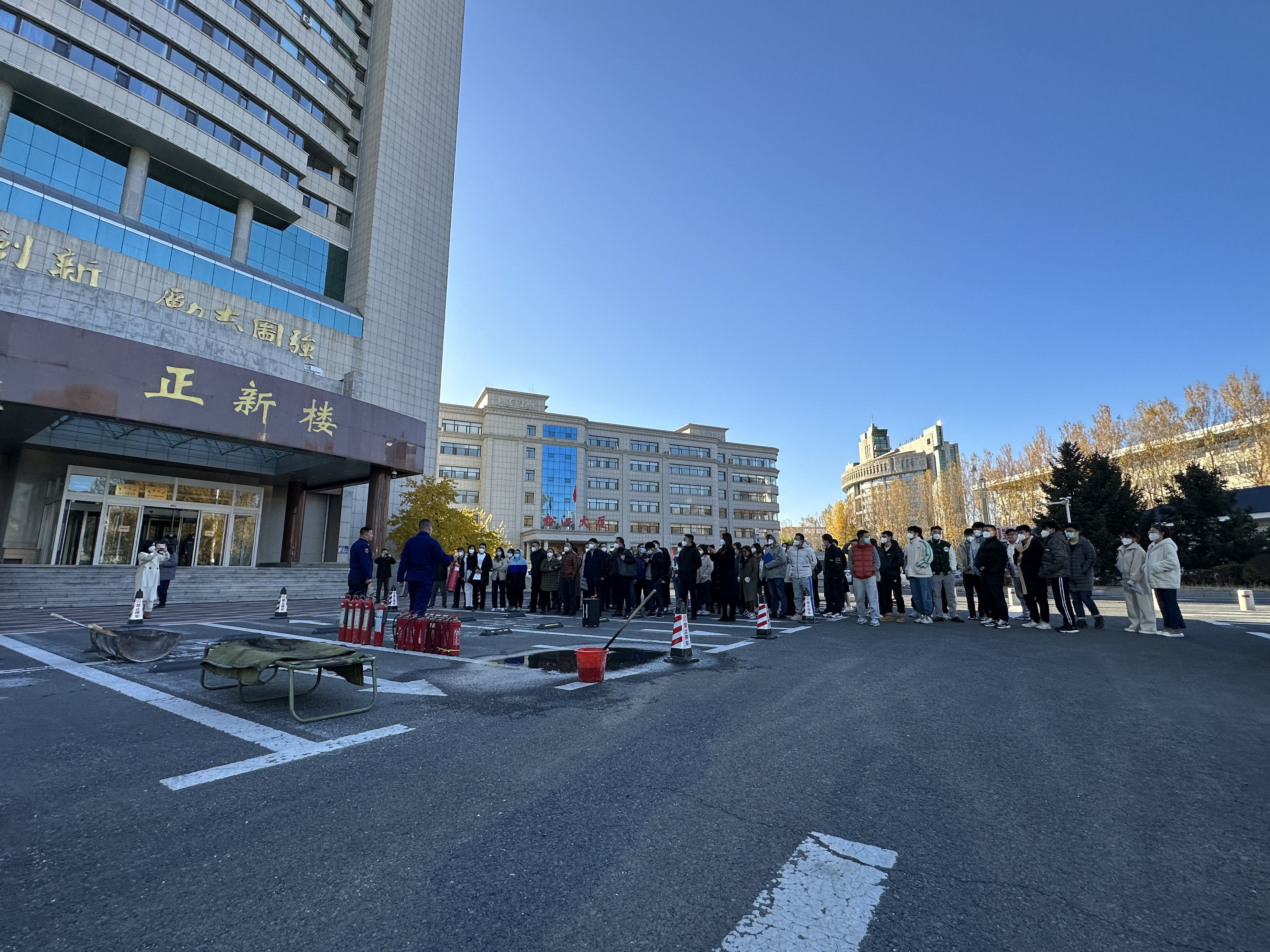 讲座结束后,云顶7610线路检测与人工智能公司在正新楼门前开展了火灾疏散逃生演练。保卫处在正新楼门前燃放了烟雾弹,随后警报响起,在消防广播的提示下,全体师生迅速从安全出口疏散撤离。全部人员撤离到安全区域后,在正新楼门前空地设置模拟火情,董立明为大家讲解了二氧化碳灭火器、干粉灭火器、灭火毯的使用方法及注意事项,并指导师生对初期火灾进行扑救。