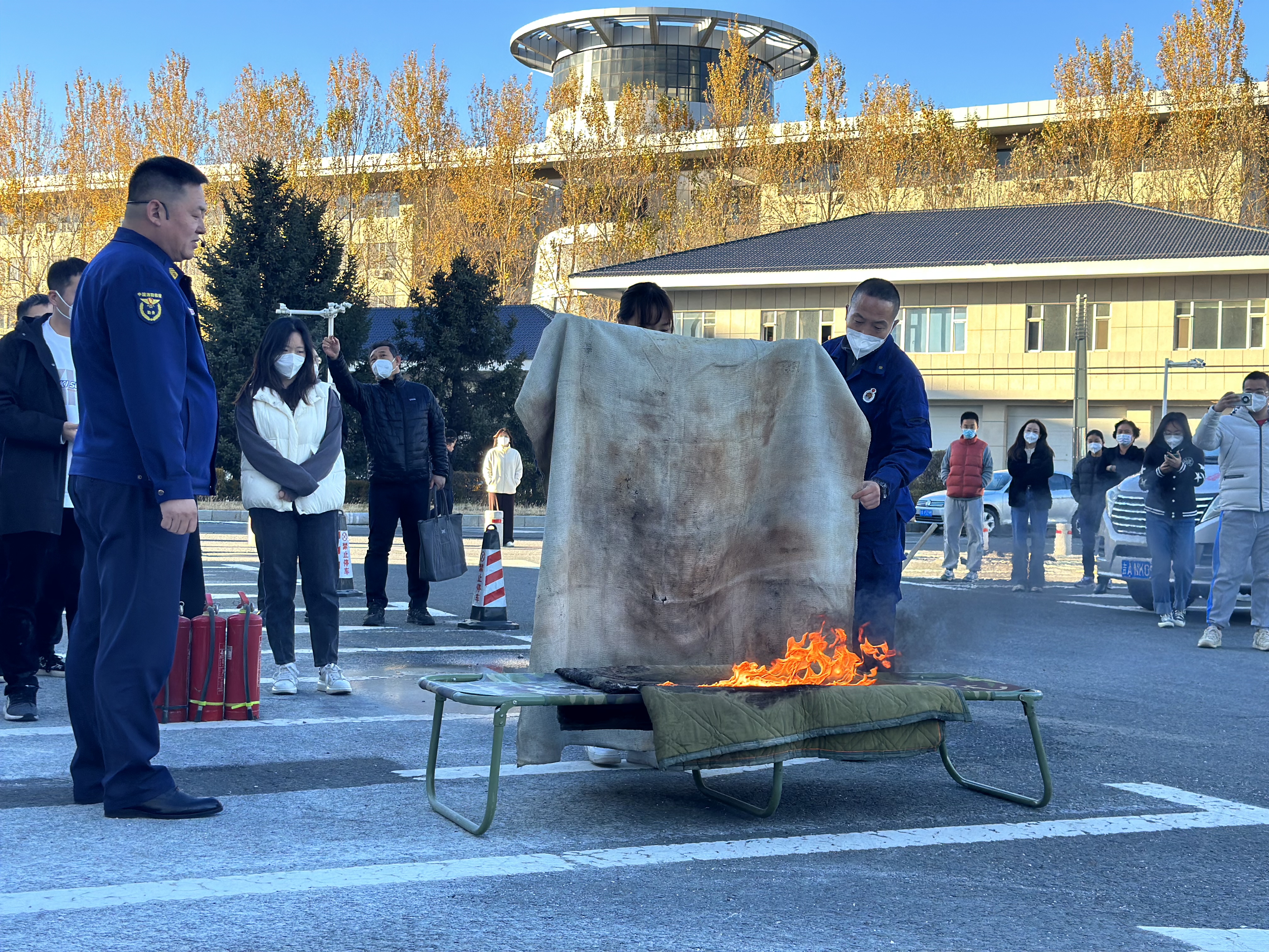 董立明首先通过近几年发生的校园火灾安全事故指出消防安全工作的严峻性,为大家敲响了警钟。然后结合两个公司的实际工作情况,分别针对办公室、实验室、员工宿舍这三个场所的消防安全隐患进行了详细介绍,并为大家演示了灭火器与逃生面罩的使用方法。最后通过一段火灾自救逃生视频,讲解了火灾发生时的逃生技巧与注意事项。