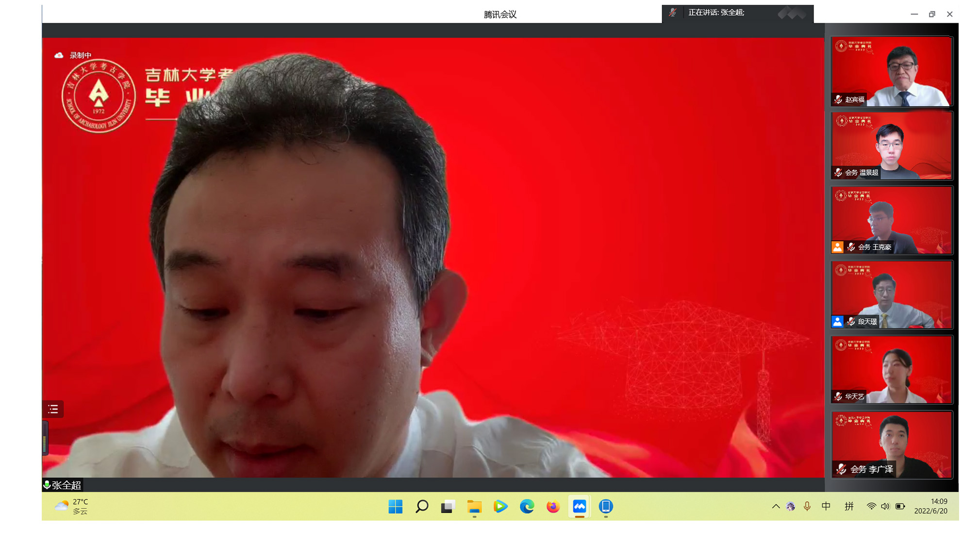 经理赵宾福教授致“直面挑战,勇毅前行”主题欢送词。他对2022届毕业生顺利完成学业表示衷心的祝贺,对辛勤付出的老师和家长表达了崇高的敬意。他指出,在当今世界处于百年未有之大变局和新冠肺炎疫情冲击下,当代青年要顺时而变,善于抓住机遇,直面人生挑战。为此,他与全体毕业生分享了三点感悟:一是希望吉大考古青年要牢记初心使命,永葆进取之心,为国家和民族发展贡献才智;二是希望吉大考古青年要锤炼品质,磨砺心志,塑造强大的内心世界,直面不同的人生挑战;三是希望吉大考古青年要锲而不舍,久久为功,脚踏实地。最后,赵经理鼓励同学们要以民族复兴为己任,在不同的岗位上开创自己的精彩人生,书写不负人民、不负时代的青春答卷。