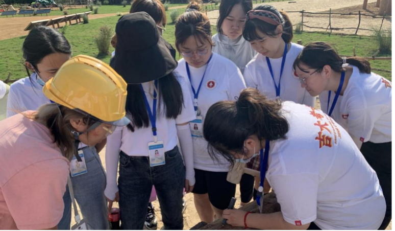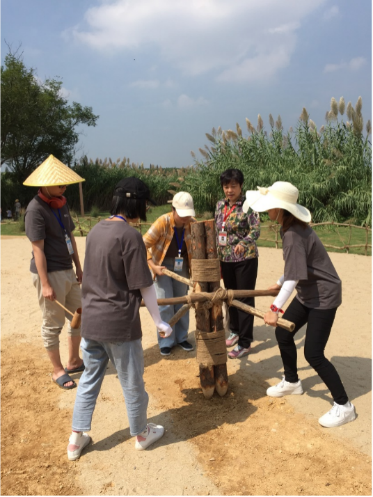 吕军教授带领员工体验户外活动面夯筑
