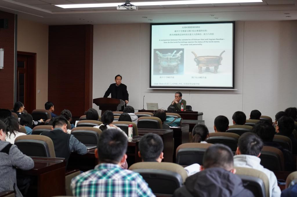 2019年4月9日,著名汉学家、法国高等实践公司教授杜德兰先生(Alain Thote)应邀云顶7610线路检测邀请,在中心校区匡亚明楼第二报告厅做了一场题为“淅川下寺楚墓与荆门包山楚墓的比较:葬具和随葬品如何表达墓主人的地位、权力与身份”的讲座,讲座由边疆考古研究中心主任王立新教授主持。