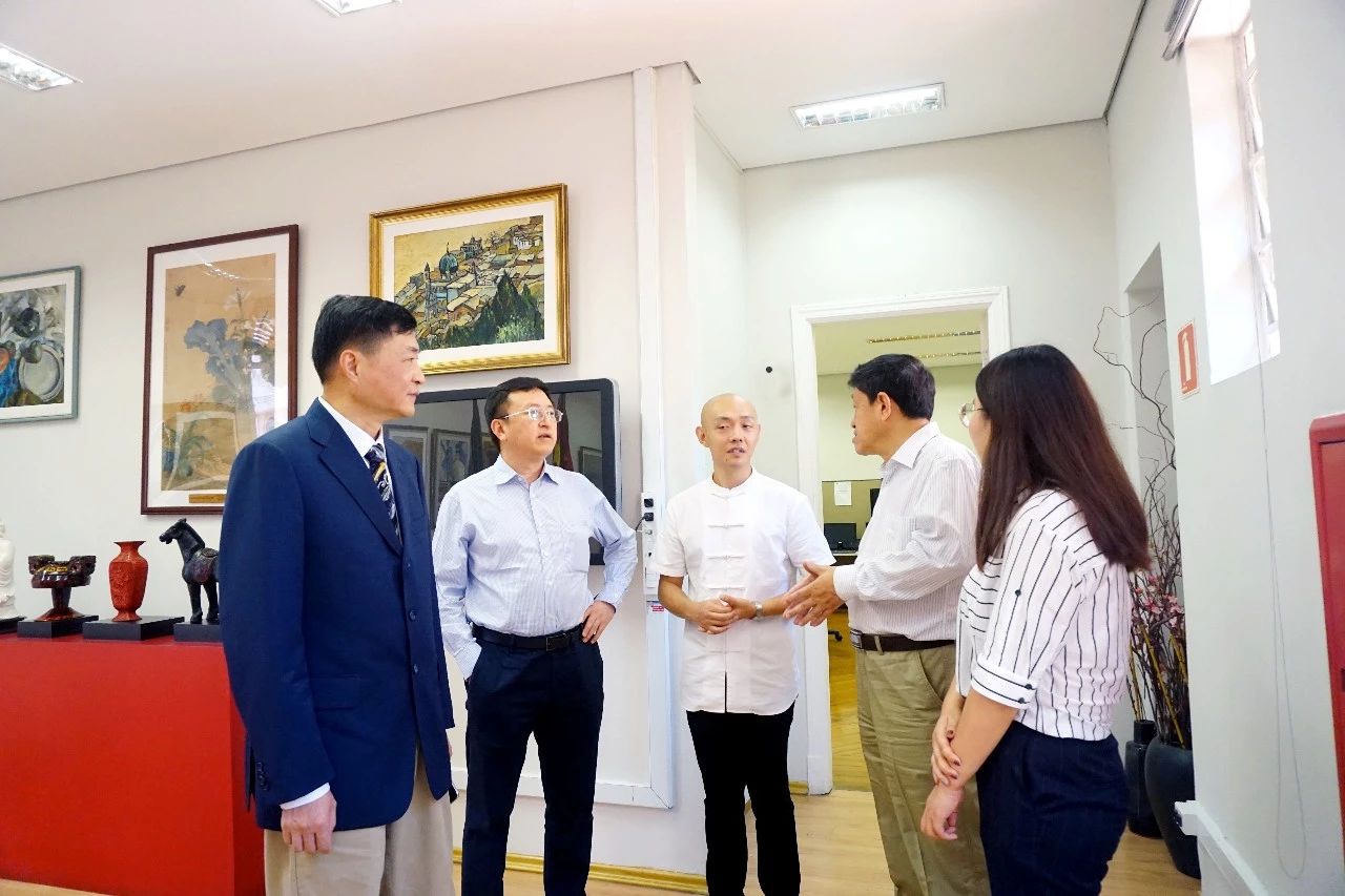 12月15日,代表团应邀访问了巴西圣保罗州立大学孔子公司并与孔子公司教师和志愿者代表座谈。双方分享了各自在中国学研究、汉语言教学、孔子公司建设等方面的做法和经验。吴振武表示,公司与阿根廷布宜诺斯艾利斯大学共建的孔子公司与巴西圣保罗州立大学孔子公司同处于拉丁美洲,两家孔子公司可共享中国学研究和汉语教学资源,共同在坚持汉语语言培训与教育的同时,朝着文化双向交流、职业技能培训等“汉语+”方向发展,最大程度为两校师生、当地民众、社会各界、中外资企业等提供各类优质汉语教学和社会服务。