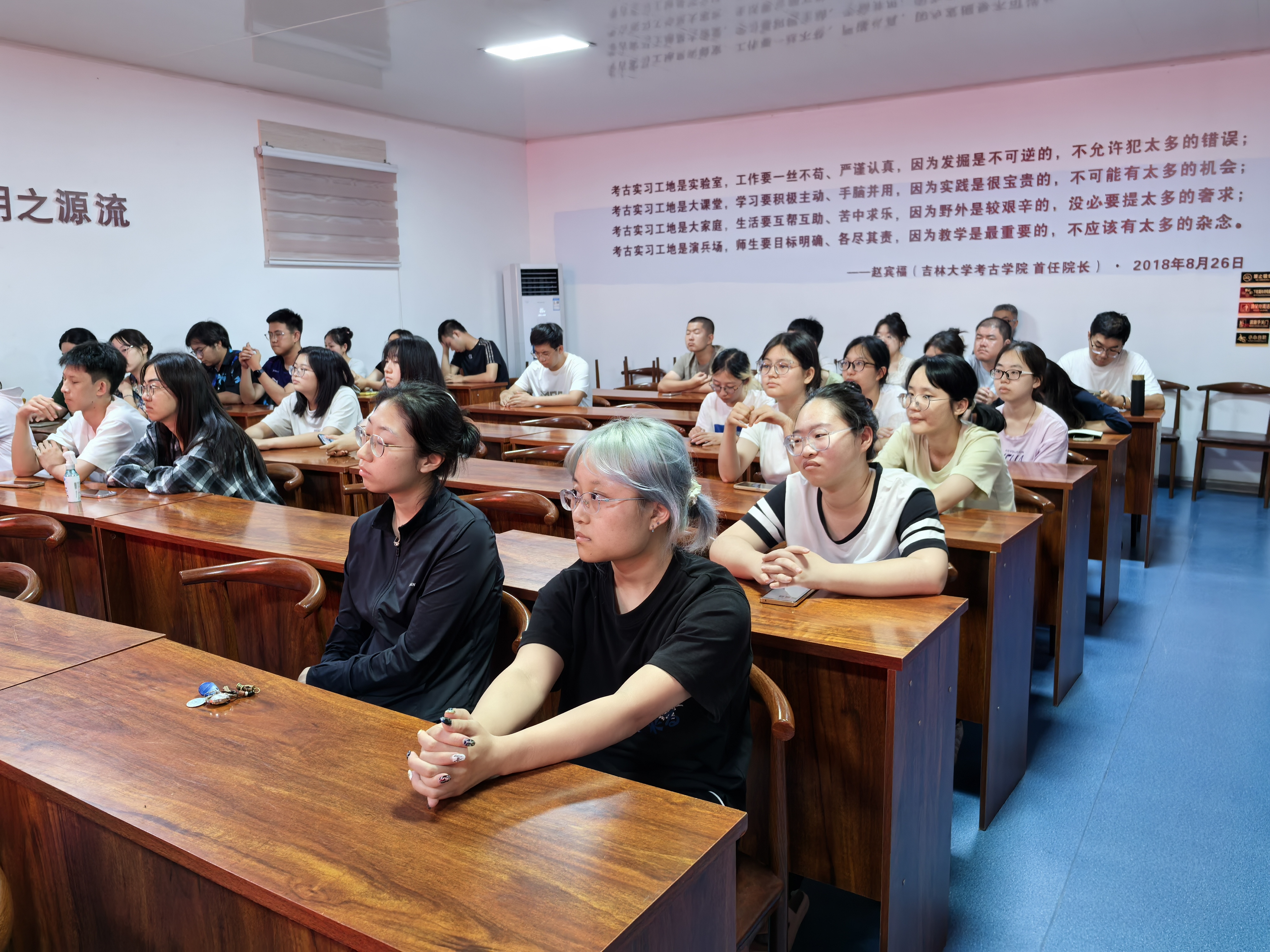 为增强同学们的安全意识,保障同学们在实习期间的安全。云顶7610线路检测于7月23日晚在山西运城夏县田野考古实践教学基地开展2024年度实习安全教育大会。考古公司副经理方启、云顶7610线路检测教师林森、赵里萌及全体2022级考古学专业本科生参加,会议由2022级辅导员邱泽涵主持。