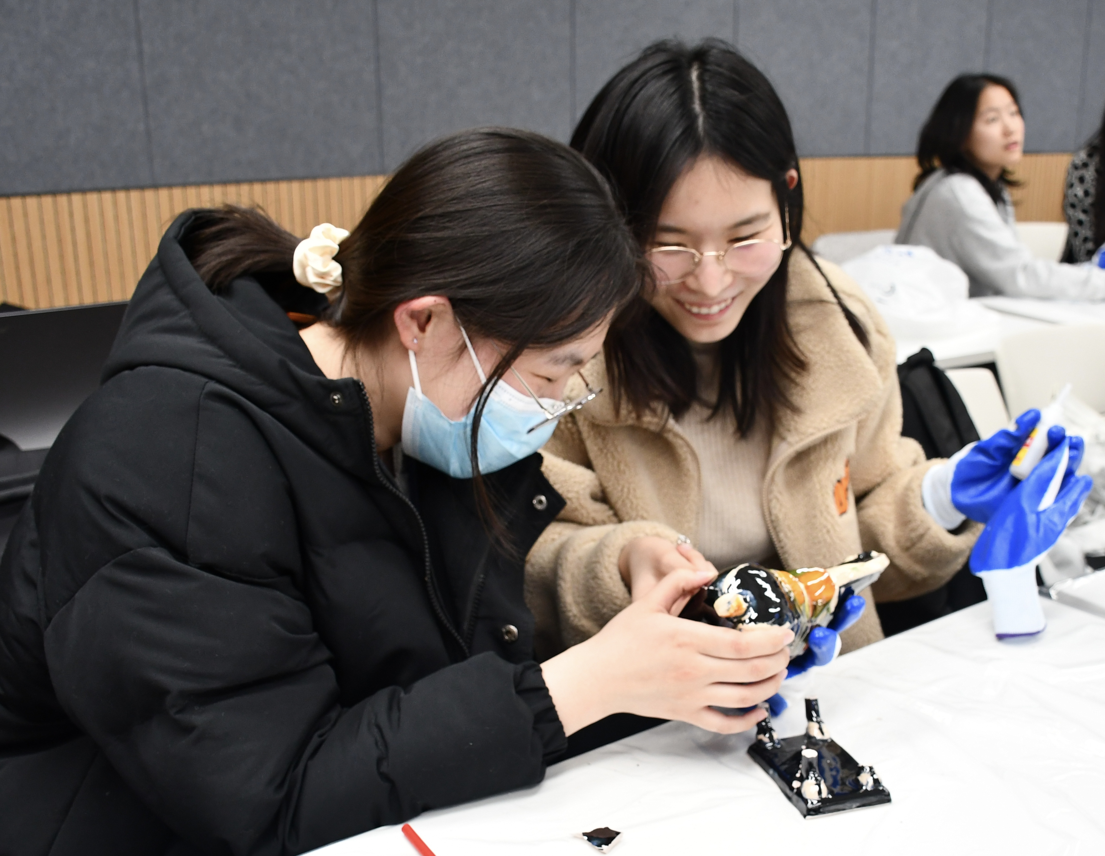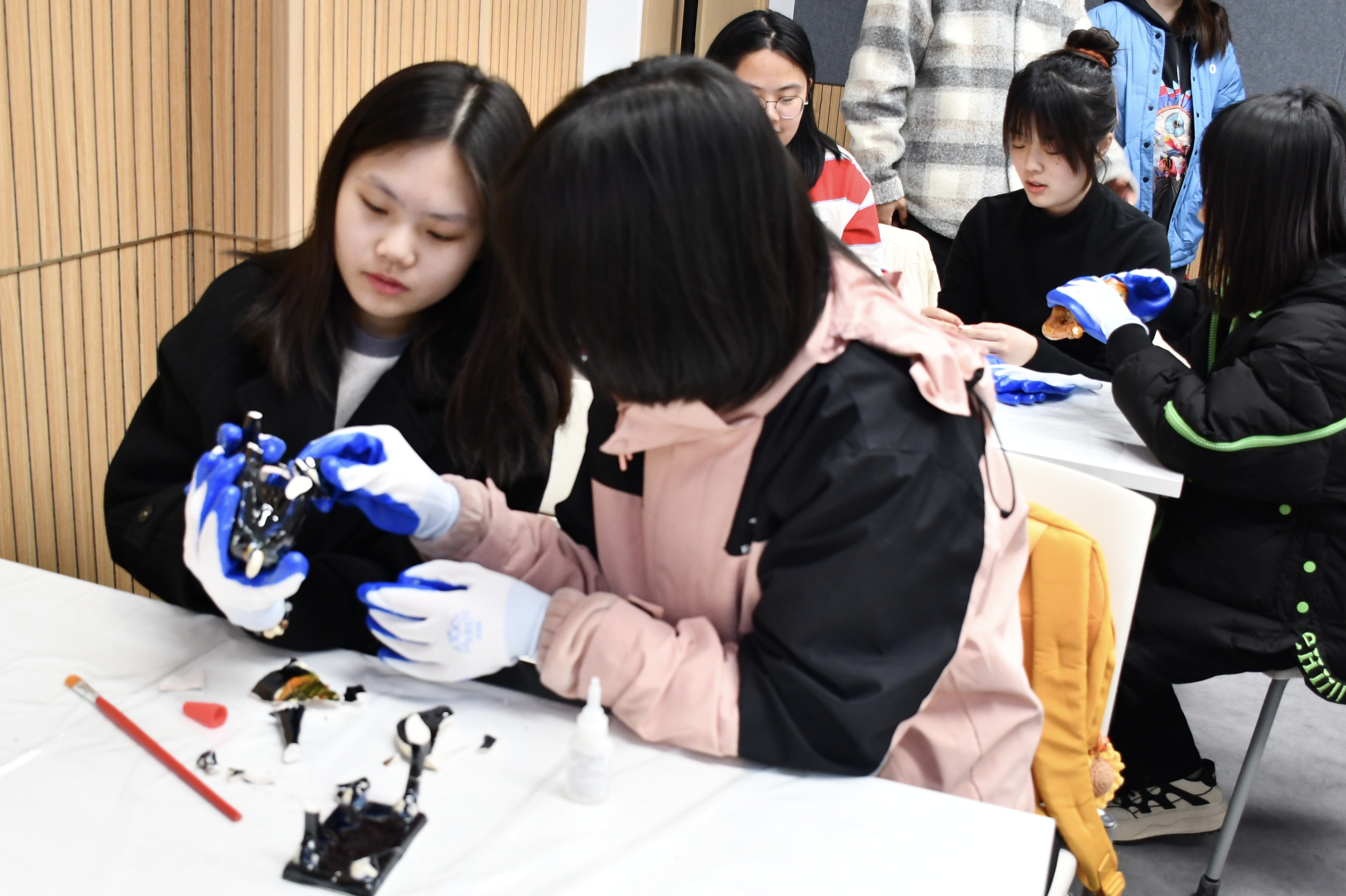 在了解修复技术后,同学们亲手操作,对残损的“唐三彩”碎片进行修复。修复过程中,同学们欢声笑语,配合默契,镜头留下了许多精彩瞬间。