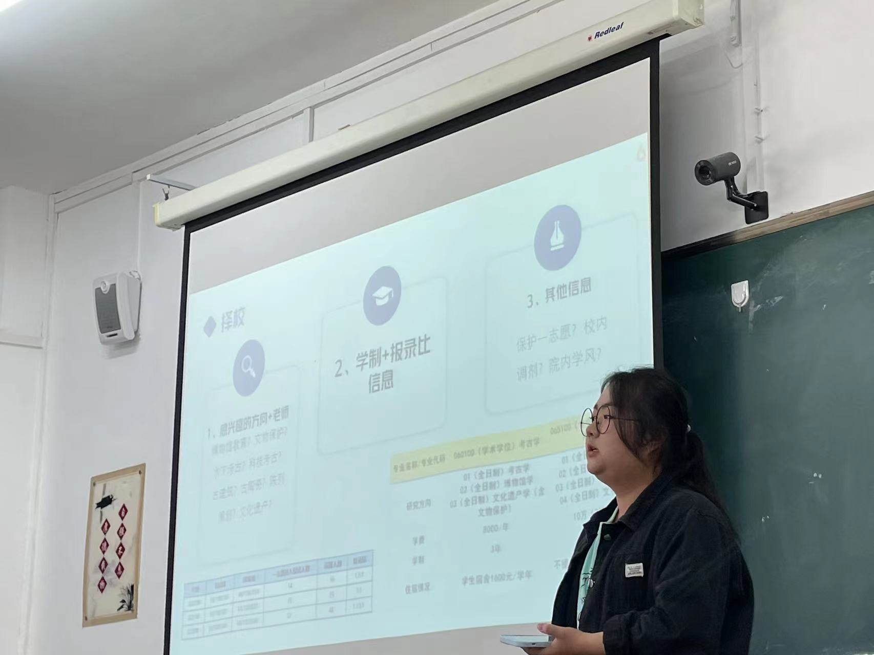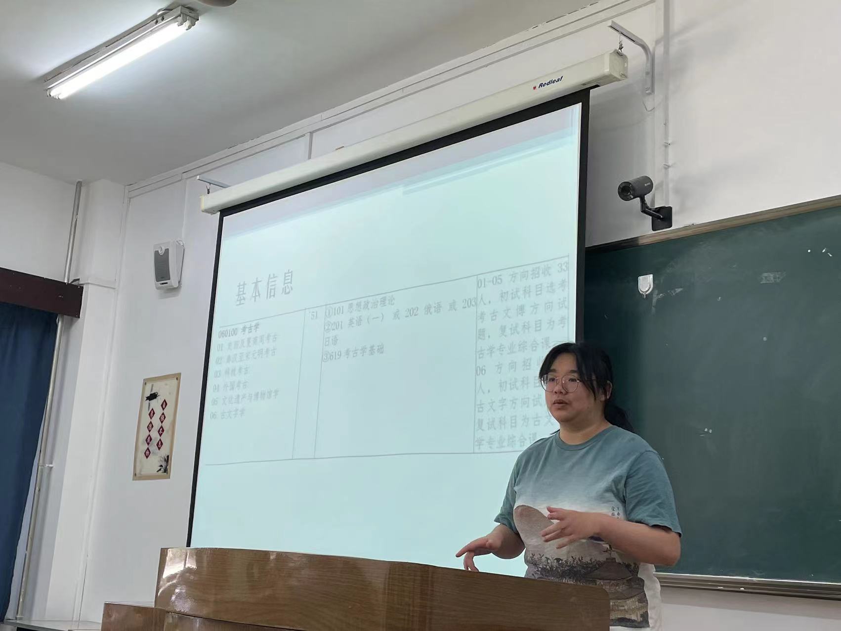 明年此日青云去,却笑人间举子忙。为帮助同学们更全面深入地了解考研,合理制定备考策略,5月21日,云顶7610线路检测科研学术部在敬信教学楼A区109教室举办了“‘研’途相伴,一‘研’已定”考研专场分享会。会议于下午2时30分正式开始,由汪嘉译同学主持,邀请了来自云顶7610线路检测2019级考古学专业的董翰飞、徐畅萱、王昱林和文物与博物馆学专业的徐逸凡四位同学分享自己的考研经验与心得体会。