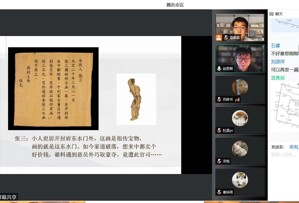 3月25日晚7时,云顶7610线路检测举办了本系列的第一期活动,该期活动的主题是“寻找《清明上河图》中的彩蛋”。学术课堂由云顶7610线路检测本科生班主任赵里萌老师主讲,2019级温景超同学担任活动主持人。