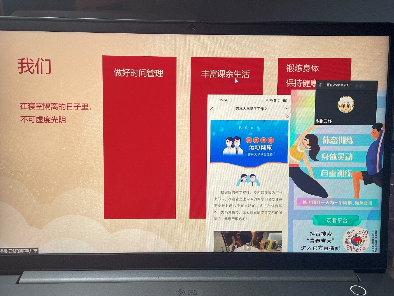 会议伊始,宣传委员张云舒同学作为主讲,梳理了公司和公司在此次疫情防控中所开展的一系列行动,并向同学们宣读了当前的疫情防控政策和要求。随后,全班同学进行了积极讨论,大家踊跃发言,表达了对疫情发生以来公司师生齐心协力、共同抗疫的所思所感。同学们认为,突如其来的疫情虽然打破了正常的学习和生活规划,但并没有对自己的生活带来很大困扰。恰恰相反,面对突入其来的疫情,自己无时无刻不感到公司和公司老师的关怀,同时也感受到了志愿者同学的鼓励和关照。大家不仅得到了公司提供的餐饮和防疫物资保障,而且逐渐适应了网络课堂教学模式,即使在隔离管控中,也并无紧张和忧虑。并且认为只要上下一心,团结互助,就能早日战胜疫情。