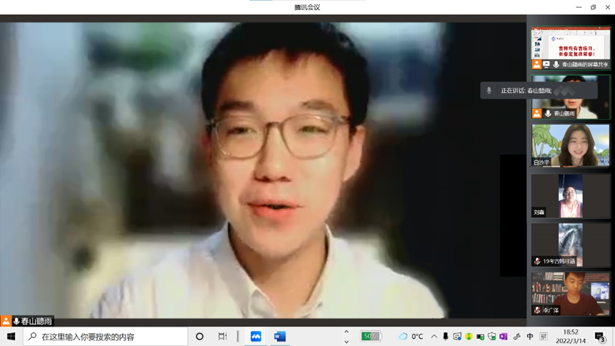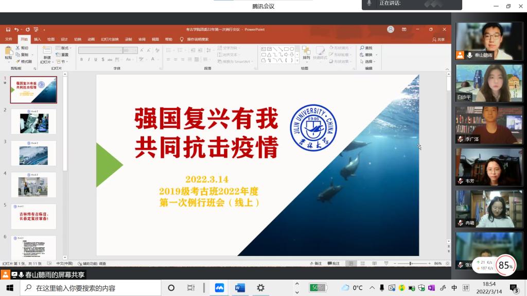 2022年3月14日晚,2019级考古班举办疫情防控主题教育线上班会,会议由2019级考古班班主任林森老师组织召开,团支书温景超同学主持,全体考古班成员参加了本次会议。