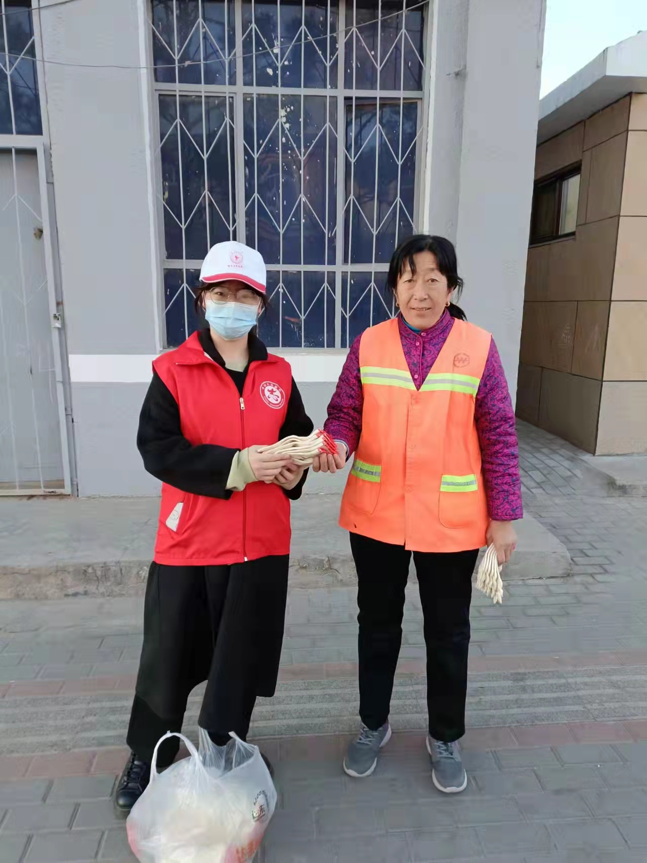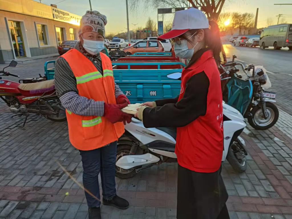 随后的时间里,李丹同学参加了一系列主题志愿活动。1月17日,参加团旗委组织的“返家乡 青实践 送温暖”活动,慰问环卫工人,为他们送上手套,表现了对一线环卫工人的感谢与诚挚敬意。1月19日,组织并参加2022年苏里格社区“我们的节日·春节”“佳节尚文明 志愿关爱行”主题活动,帮助独居老人擦玻璃,为老人们送上新年的祝福。1月20日,组织并参加2022年苏里格社区“建设建康家园 共享健康佳节”主题活动,派发宣传单,宣传健康观念,进行环境整治,为家乡的绿色健康环境做贡献。1月27日,同社区工作人员入户宣传“智治乌审”平台,让社区居民能够更便利地与网格员沟通,并简要宣传过年相关防疫知识。1月28日上午,组织参与2022年苏里格社区“挥毫写春联 红火送祝福”“我们的节日·春节”系列活动,给社区居民分发春节对联,年历等,并同社区工作人员一起为社区贴对联,挂灯笼,在社区营造了浓浓的过年氛围。1月28日,参与2022年乌审旗老员工寒假“返家乡”社会实践活动分享交流暨表彰大会,全体实践队员分享了实践心得与收获,通过交流,受益匪浅。