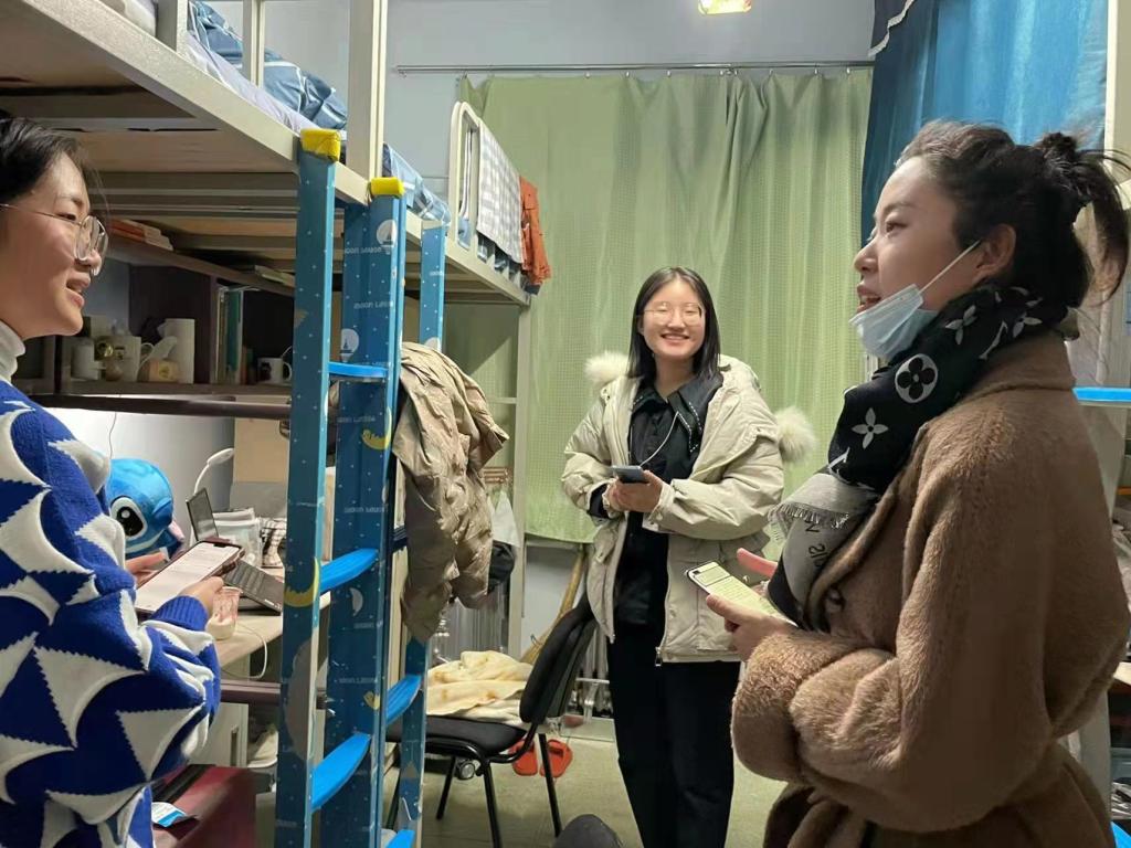 走访过程中,老师们问询了同学们在寒假期间的学习与实践经历,了解了员工的假期生活和思想动态,关心了同学们的返校防疫情况,并核验了同学们的通信行程卡、核酸检测证明等材料。期间,老师们仔细查看了员工宿舍的环境卫生和用电安全等方面情况,叮嘱同学们要遵守公司的住宿规定,提高安全用电意识。同时要求大家遵循开学期间公司的疫情防控要求,做好个人防护和每日健康监测工作,合理安排作息时间,认真学习,营造积极健康的宿舍文化等。此外,老师们重点走访了毕业年级宿舍,了解他们的思想动态、毕业规划及考研情况,针对同学们存在的困惑与迷惘,提出了中肯的建议与指导,增添了毕业生找工作、升学的信心。