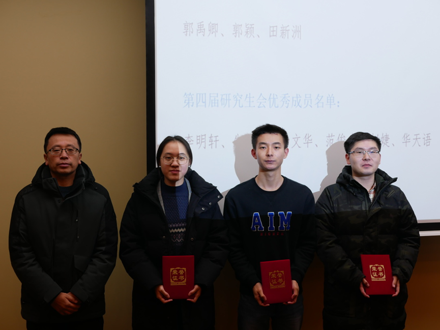 听取各部门工作报告之后,高铷婧同学宣布表彰优秀研究生会成员名单,侯建峰书记和于歌老师为受表彰同学颁发证书,以资鼓励。侯书记肯定了第四届研究生会于本学期所做的工作与努力,赞扬研究生会诸位同学在不耽误自身学业的情况下充分利用了自己的时间为公司、老师和员工办实事、做贡献。于歌老师祝贺研会在这一学期中所取得的成绩,肯定了研会所做工作,勉励大家继续努力,为公司、为老师和员工服务,在研会中锻炼自己,提高自己,做公司排头兵,学习、实践两手抓,做更加优秀的新时代青年。