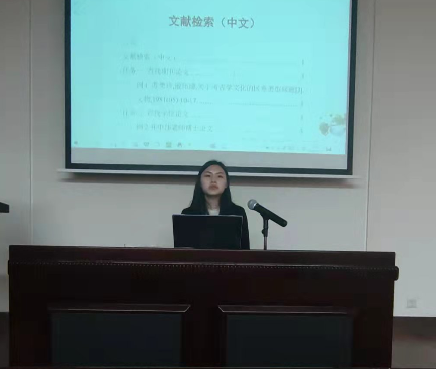 在主持人介绍完主讲嘉宾后,徐子姣同学开始为大家讲解中文文献检索的一系列方法。徐子姣同学认为掌握文献检索技巧需要教学与实操并行。她以知网为中心,提出四个实操问题,由浅入深地为大家进行讲解。从全名检索论文到高级检索,从期刊论文搜索到学位论文搜索,徐子姣娓娓道来,讲解了许多技巧,让同学们受益良多。在讲到下载PDF文件与论文引用问题时,一位到访的师兄亲临指导,为大家带来了额外的收获。随后,董华同学分享了专业文献检索的原则与经验。热爱旧石器考古的董华同学以Z–library为讲述核心,将自己代入了大一员工的视角,讲述检索原则,一点点拆分文献搜索逻辑,提出了一些真挚建议,为想要开拓视野、学习国内外前沿知识的同学带来了宝贵经验。最后主持人陈述闭幕辞,一年一度的文献检索讲座顺利结束。