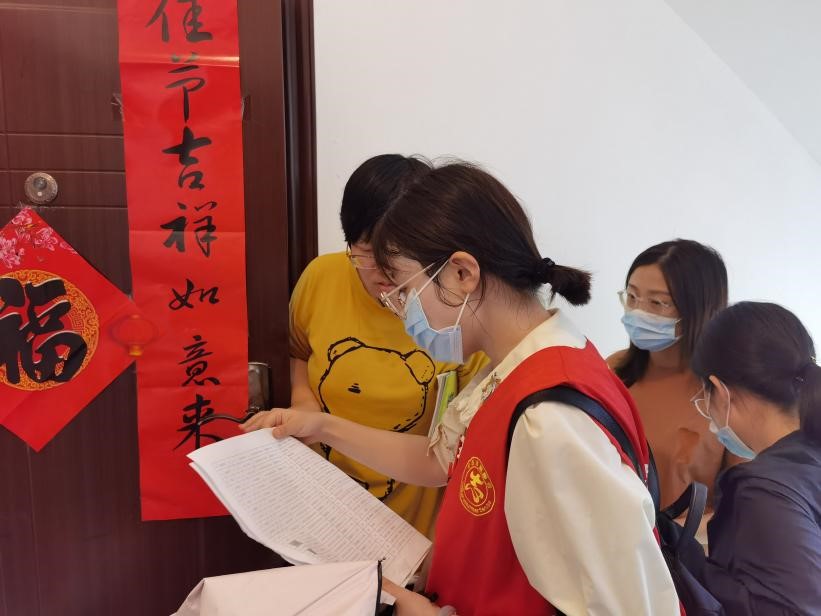 八月盛夏,艳阳当空。吴芊妤同学与社区工作人员冒着酷暑,对照记录着未接种新冠疫苗住户的名单,逐一入户进行问询。对身体抱恙的老人与正在哺乳期的孕妇,她们细致询问其身体状况,并仔细记录相关信息。对不确定是否符合接种条件的人员,她们表示社区可以送其去医院免费问询,由医生判定是否可以接种。而对身体无碍但不想接种的居民,她们耐心劝告并晓之以利弊。虽然在此过程中也吃了些闭门羹,但看到大多数居民能够在自己的劝说下同意接种疫苗,吴芊妤同学内心感到十分高兴与充实。疫情来势汹汹,不可逃避。只要我们合力防控,积极接种疫苗,配合社区防疫安排,就能共同战胜疫情。
