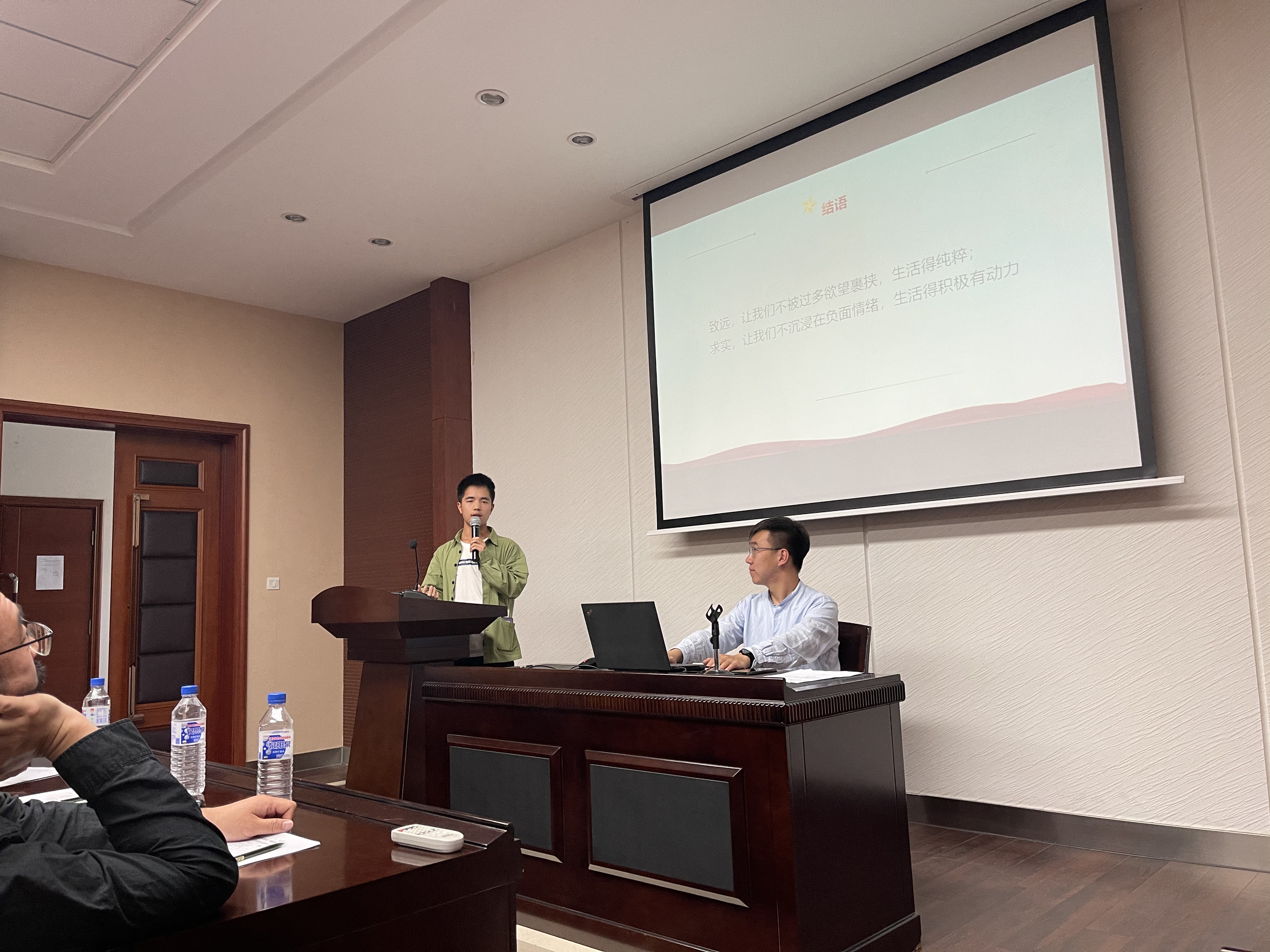 比赛最后,方启老师对演讲比赛进行点评,他表示:各位选手的表现可圈可点,众选手表达形式多样,内容丰富,但出现了一些问题如偏离主题,缺乏准备等,使得最后展现成果略有逊色。他指出:演讲需要切合演讲主题,不仅限于陈述文章,还要努力形成共鸣。方启老师强调同学们首次登台的表现虽有不足,但未来可期,对选手们表达了美好的祝愿。最后,各评委老师们为本次演讲比赛获奖队个人颁发奖状和奖品,以资鼓励,望再创佳绩。