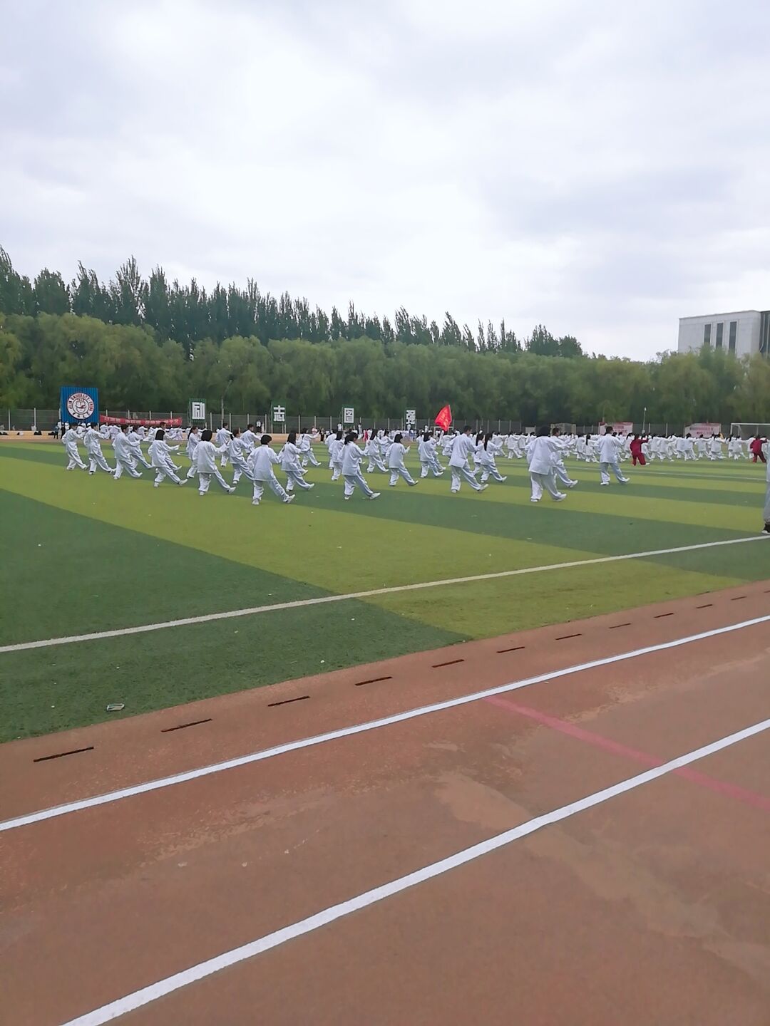 比赛于上午八点在体育场中心足球场正式开始。两支队伍为一组,同时进行比赛,接受裁判的检验。位于第七组的云顶7610线路检测选手们身着白色太极服,整齐划一地列阵入场,向看台上的裁判与观众行抱拳礼,高喊出“古史长往,溯流四方。长浪有尽,少年无双”的口号。随后,音乐响起,运动员们铭记平日训练时教练的指导和自己的心得体会,依循节奏、彼此配合着打出一招一式,圆满完成了比赛。所有参赛组结束比赛后,集中在主席台下,聆听了裁判员老师对本次比赛的评点与总结。最后,大家不顾参赛的辛苦,进行了集体合练,为将于不久后召开的运动会上的表演作准备。