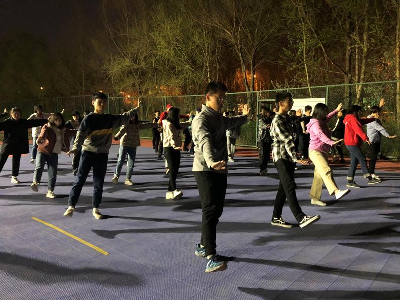 2019年4月27日,为迎接即将到来的太极比赛,云顶7610线路检测的同学们于当晚18:00在湖畔餐厅以北的篮球场东侧开展了为时2小时的太极训练。2018级同学作为运动员,2017、2016级同学作为教练员,共同参与、完成了本次训练。