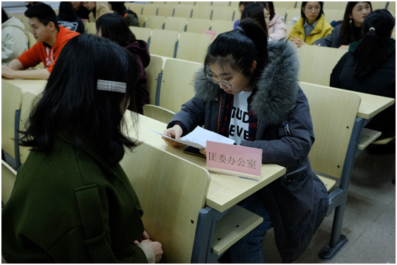 首先,员工会主席吴天聪向前来参加面试的同学表示热烈欢迎,并简单介绍了团委和员工会各部门的职责及主要工作内容。接着,各部门正式开始面试。参加面试的部门主要有团委办公室、宣传部和员工会学术部、文体部、心理部、生管部、实践部、组织部。面试过程中,同学们先做简单的自我介绍,之后,各部部长针对面试同学的相关工作经历和未来工作设想进行提问,并如实作好记录。纳新现场气氛活跃。然后,团委副书记刘颖杰发言,表达了自己对这次参加面试的同学的殷切期望,并强调责任感和使命感对于学习、生活和工作的重要性。最后,员工会主席吴天聪对本次纳新活动进行总结。