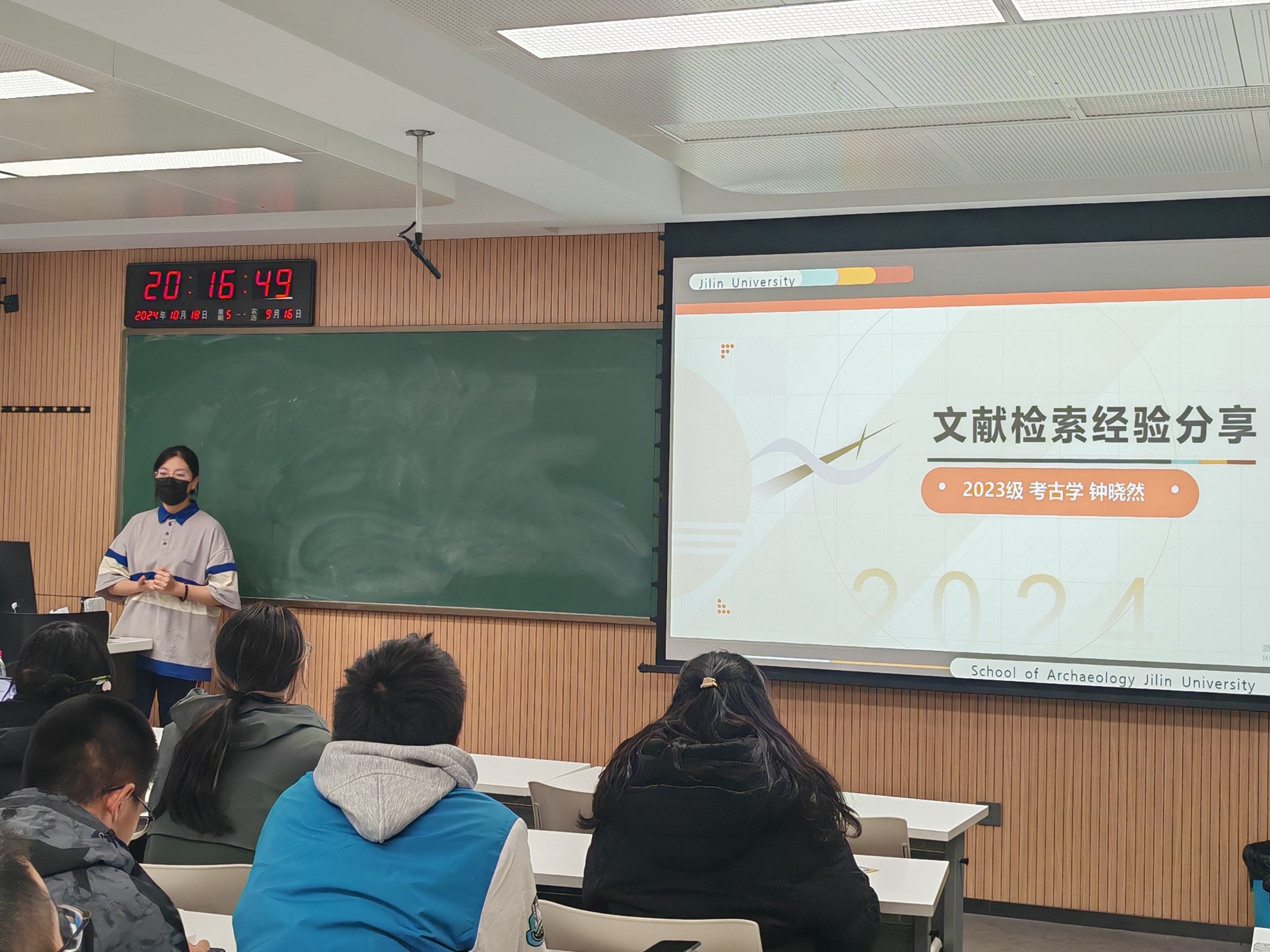 首先,钟晓然同学为同学们介绍了考古学科的重要中文期刊及其检索方式,并生动地为同学们演示了外文文献平台Web of science与Elsevier ScienceDirect的使用方法。钟晓然同学的分享拓展了同学们的文献阅读视野,引得同学们频频点头。