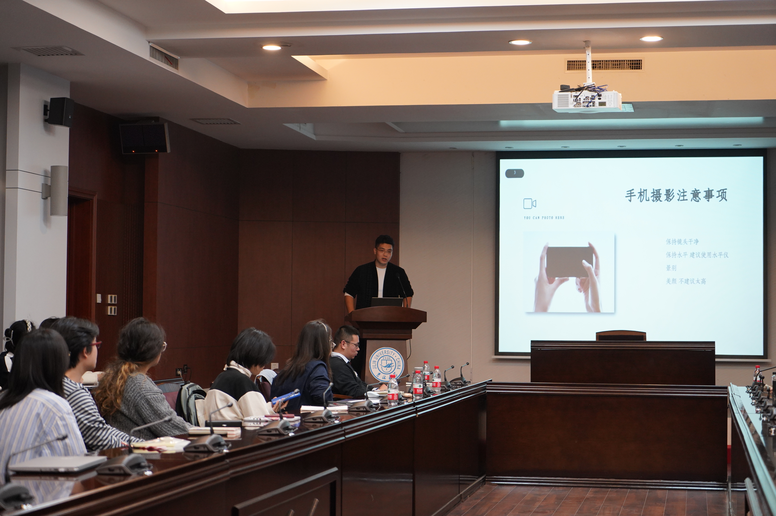 摄影技能专题培训环节中,2023级硕士研究生王克豪重点分享了摄影的规范问题,从不同设备摄影注意事项、合影站位、旗帜规范、摄影师站位与构图及其他注意事项五大方面,向同学们讲述摄影中易被忽视的重点,强调注重照片规范与审美,避免增加后期工作难度。同时,他对公司近期活动照片进行评析,指出一些照片的不足之处,点出部分照片的亮点,让同学们更有针对性地对各自的摄影技术加以完善与改进。