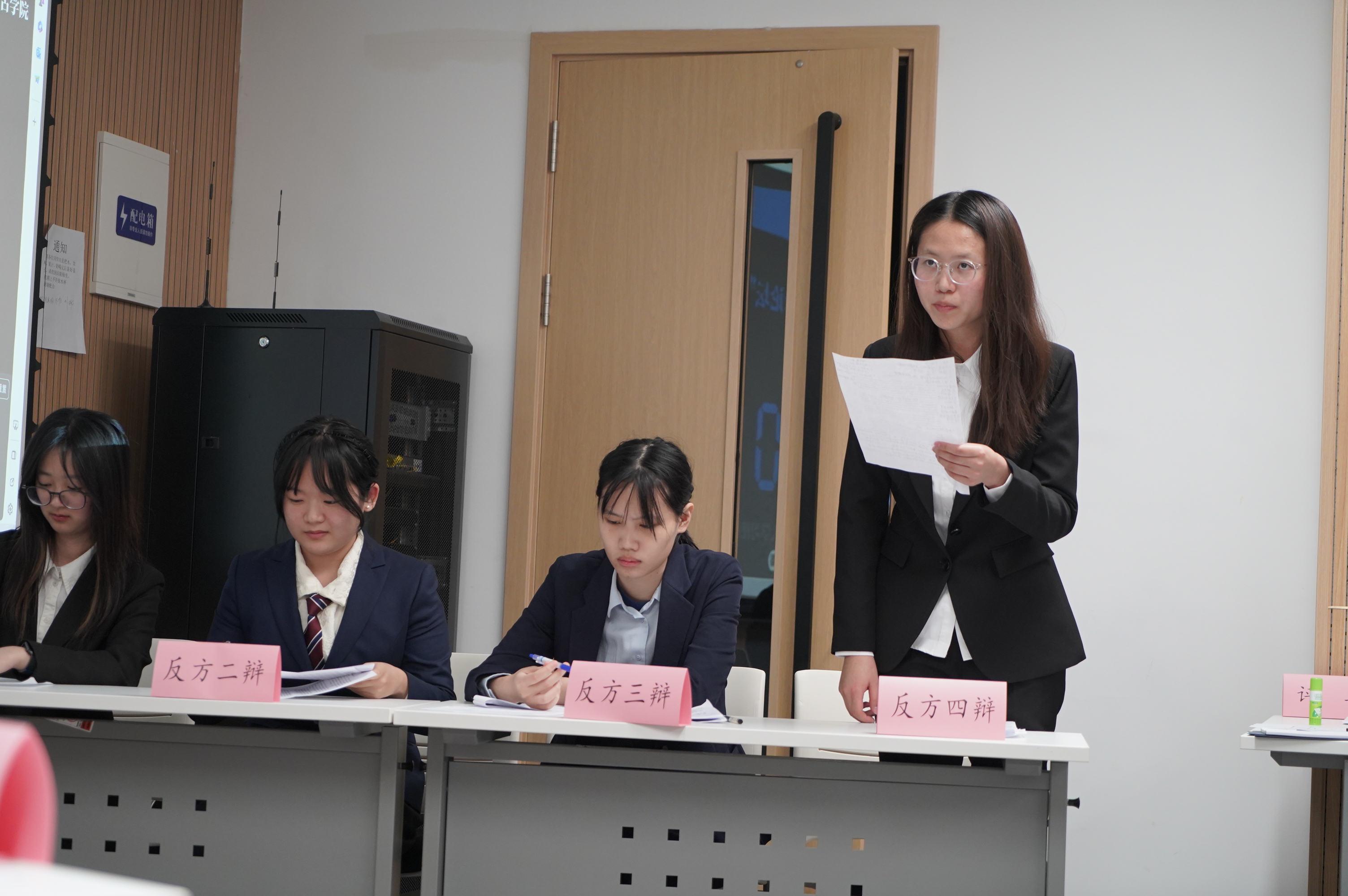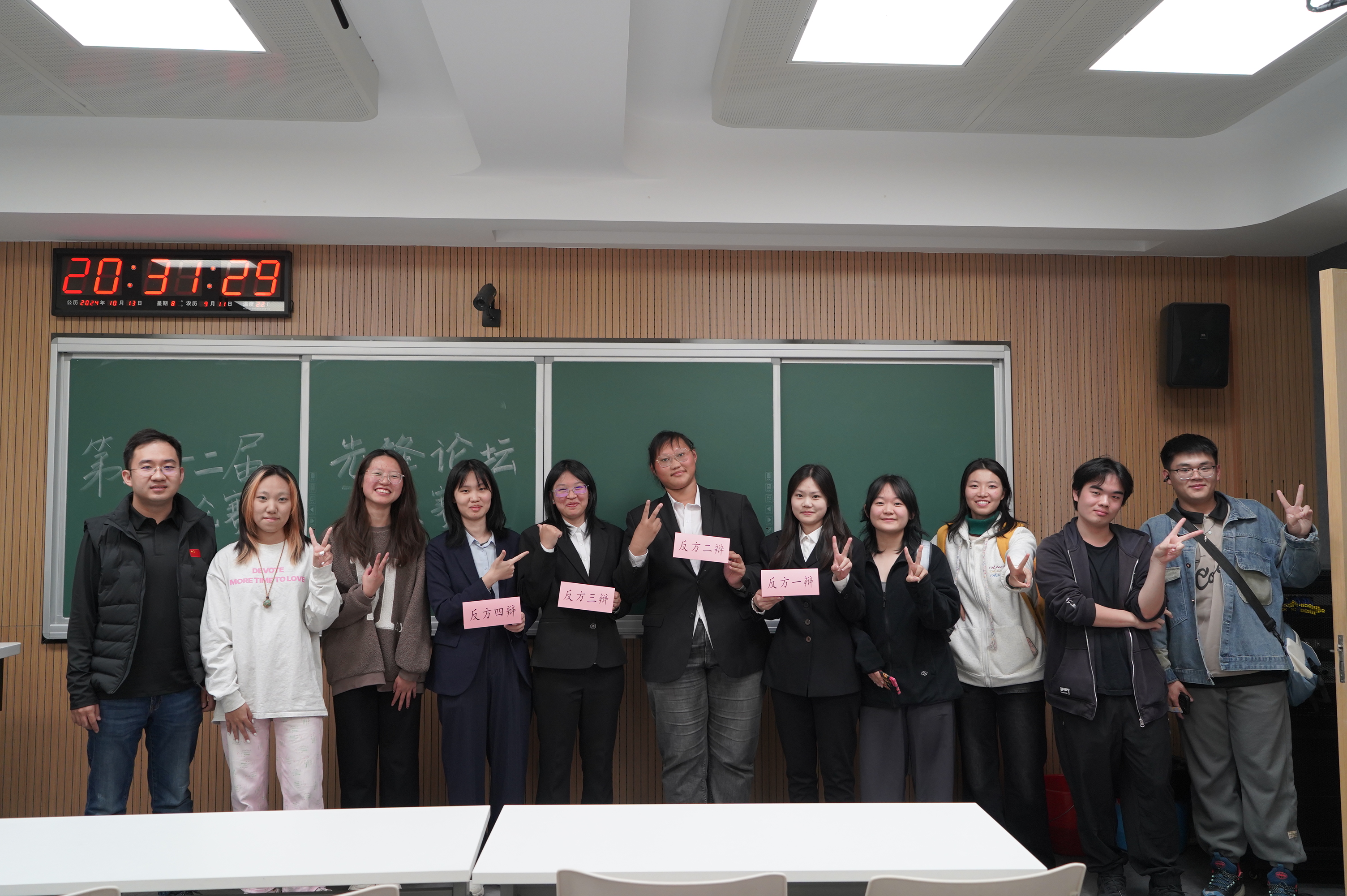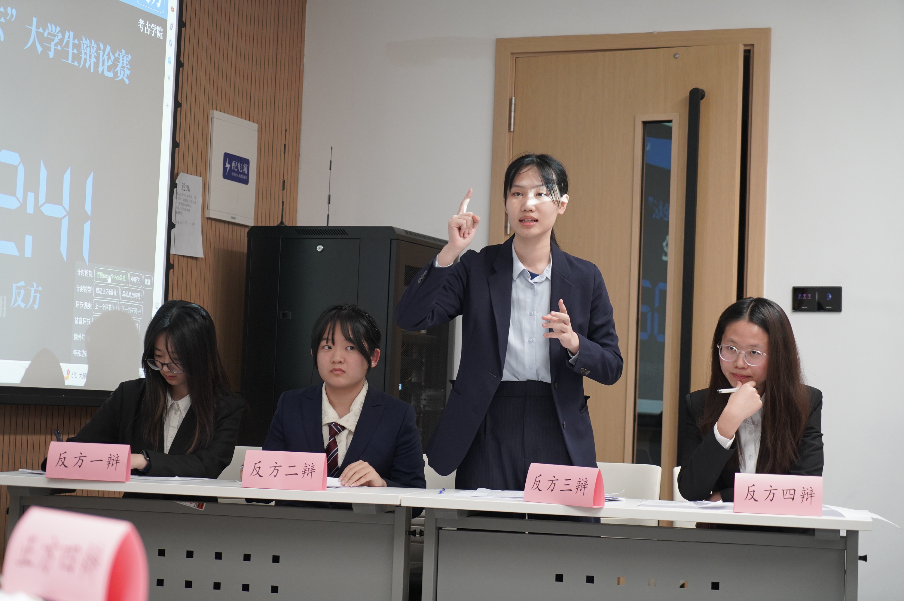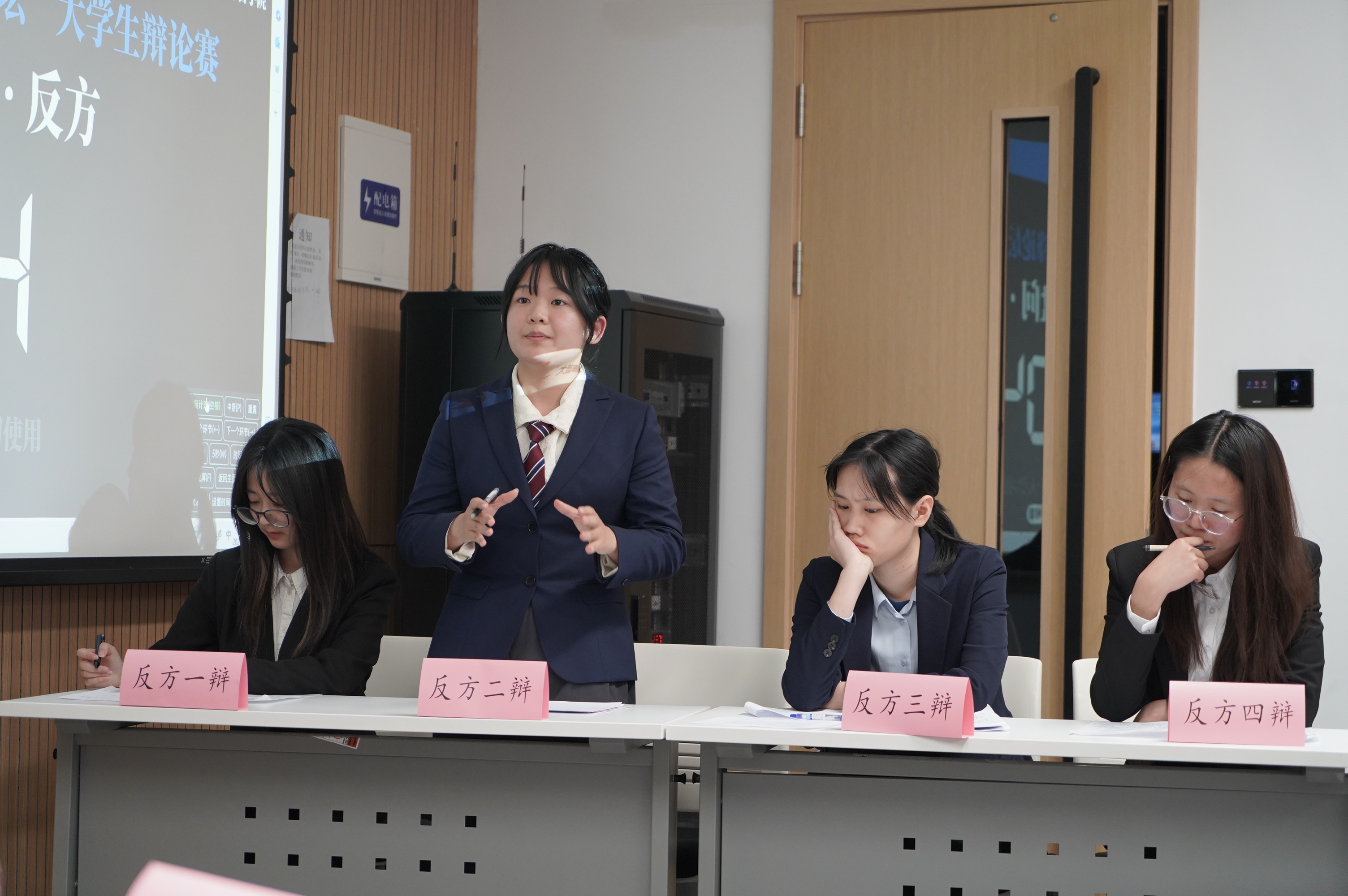 10月13日,小组赛第一轮,云顶7610线路检测辩论队对战护理公司辩论队,持“超前的消费观念和行为对社会经济发展弊大于利”观点。队员赵亦婴、李雨桐、程玉星、成荃准备充分,与对方唇枪舌剑、你来我往,凭借出彩的临场发挥和默契配合成功晋升八强;辅导员邱泽涵老师也在现场见证了这一时刻。反方四辩成荃精彩的辩论为她赢得了“最佳辩手”称号。