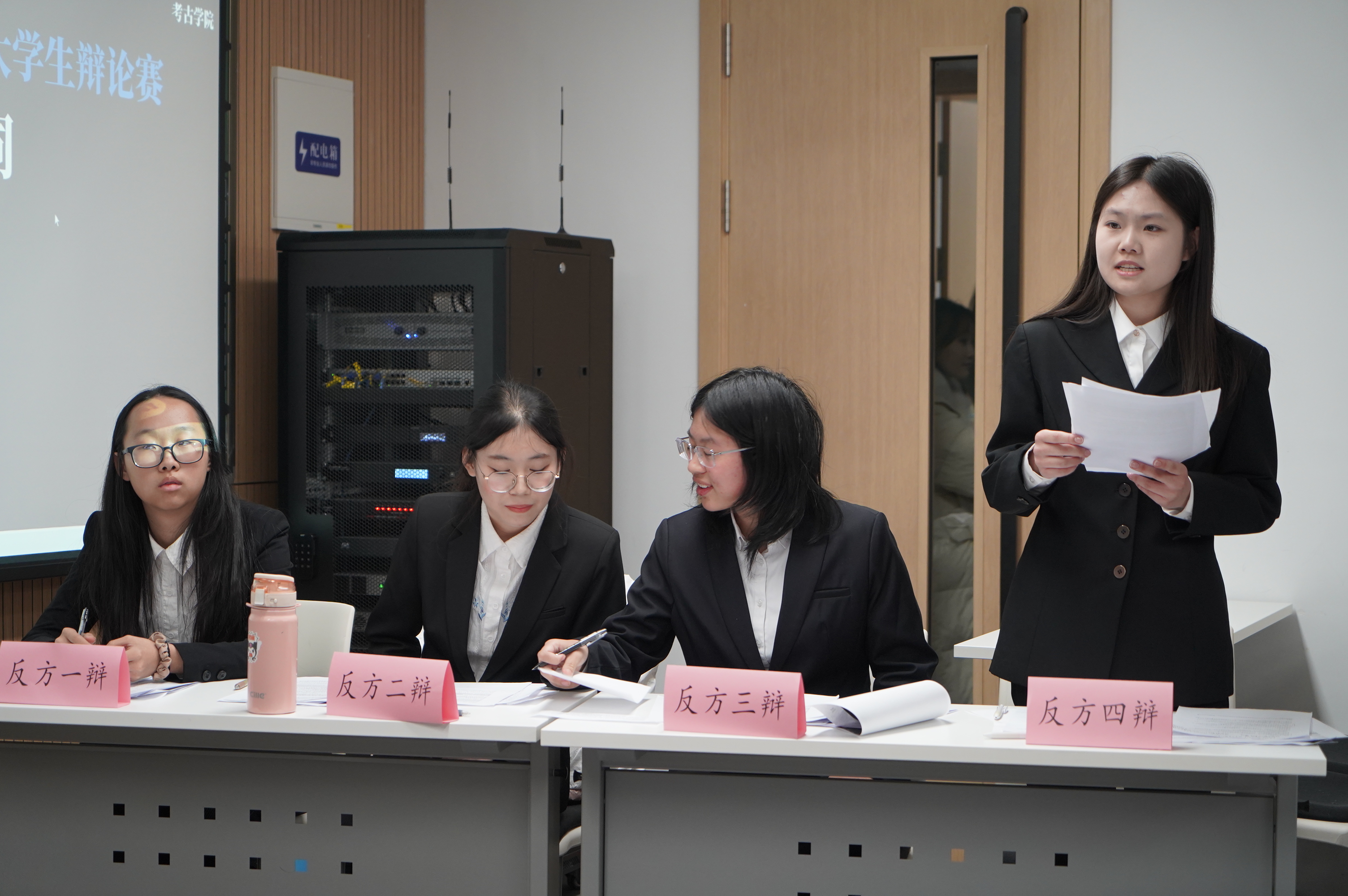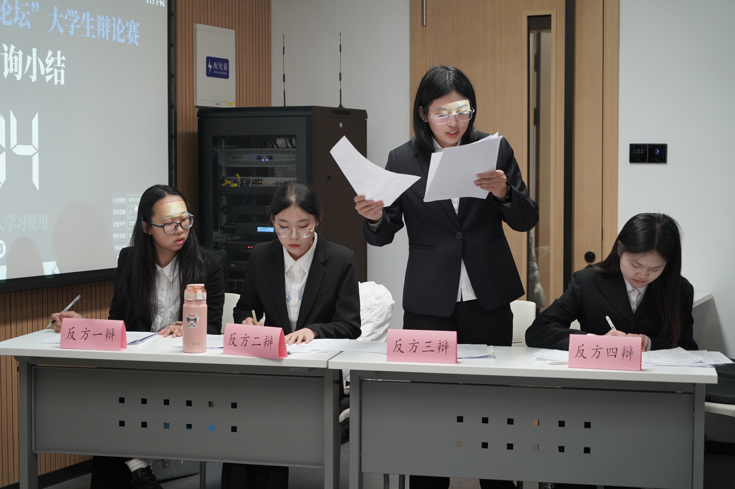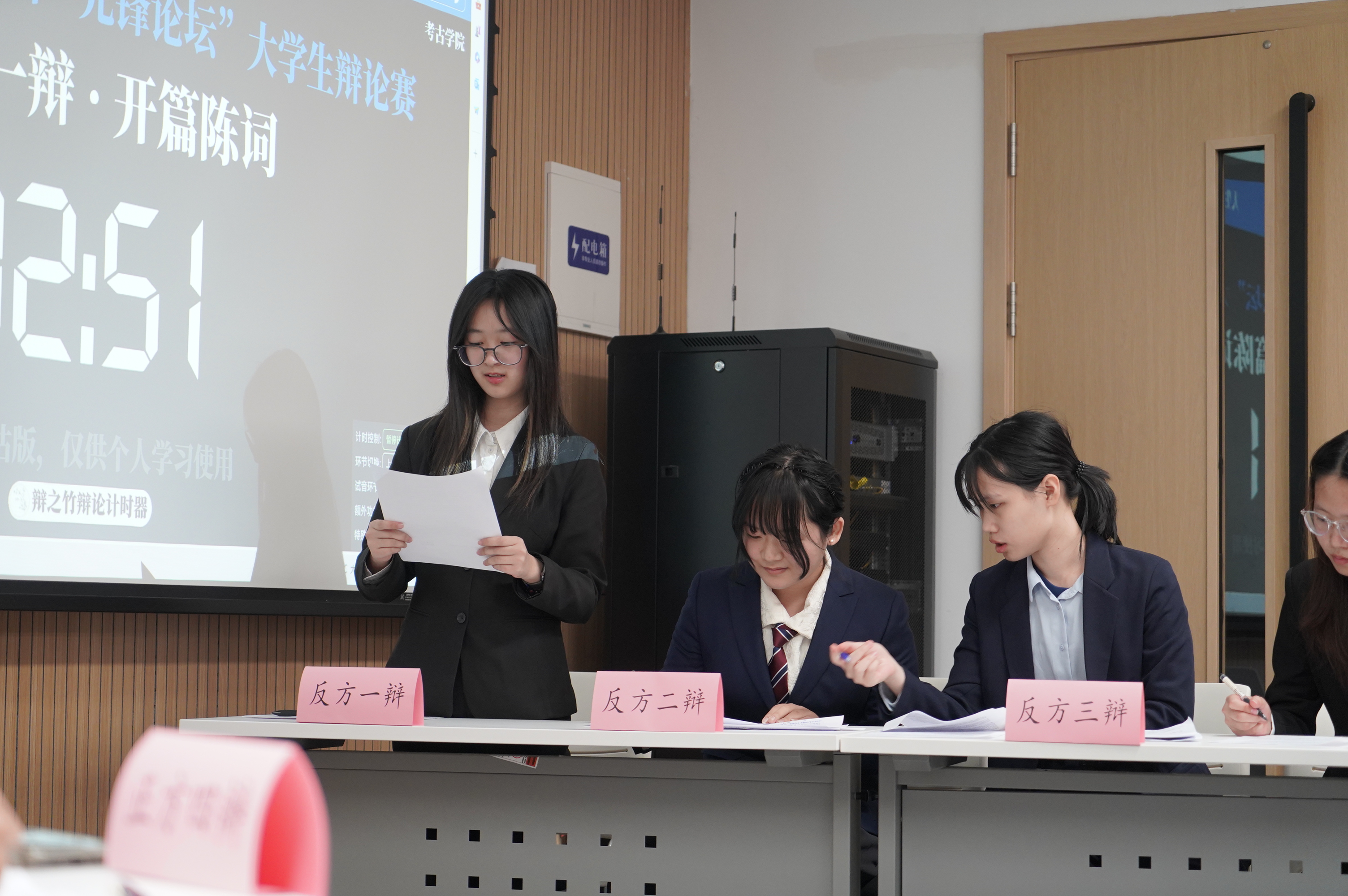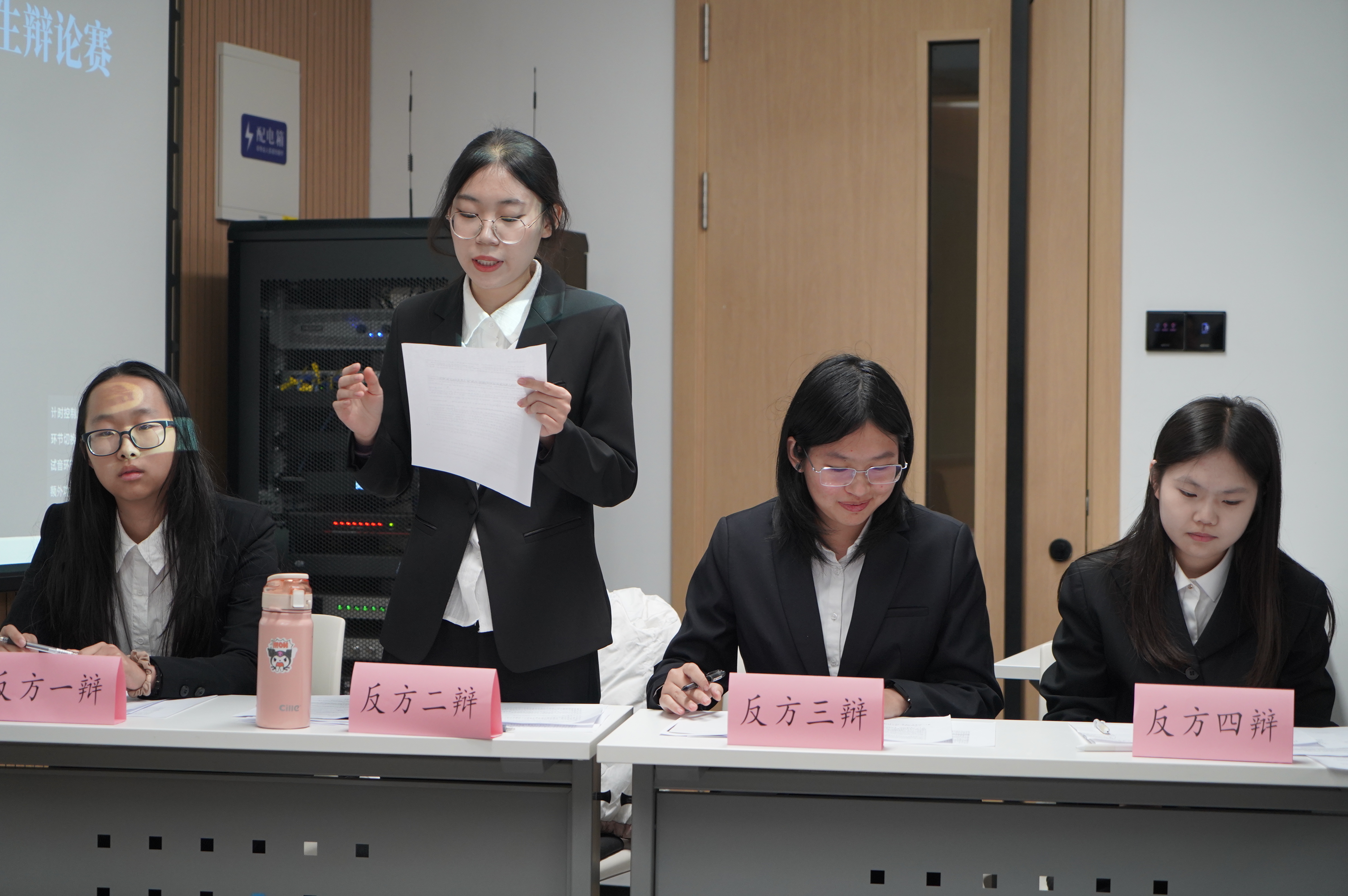 10月13日,小组赛第一轮,云顶7610线路检测辩论队对战护理公司辩论队,持“超前的消费观念和行为对社会经济发展弊大于利”观点。队员赵亦婴、李雨桐、程玉星、成荃准备充分,与对方唇枪舌剑、你来我往,凭借出彩的临场发挥和默契配合成功晋升八强;辅导员邱泽涵老师也在现场见证了这一时刻。反方四辩成荃精彩的辩论为她赢得了“最佳辩手”称号。
