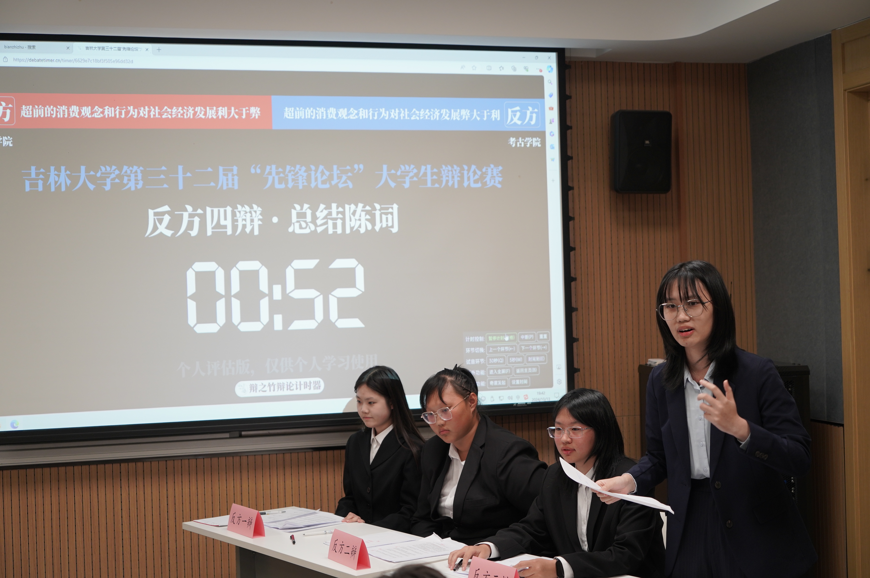 10月27日,第二轮小组赛第二场,云顶7610线路检测辩论队对战软件公司辩论队,我方持“现代年轻人的发疯文学是对现实的回击”观点。队员陈瑞雯、薛紫琦、程玉星、赵亦婴在不到一周的短暂时间中克服困难、竭尽全力,并参加两场模拟辩论、力求准备充分;赛场上,他们火力全开、勠力同心,彰显了砥砺奋斗的可贵风貌。虽然最终我方因一票之差而落败,但三场比赛的经验积淀将为云顶7610线路检测建设更高水平的辩论队添砖加瓦。