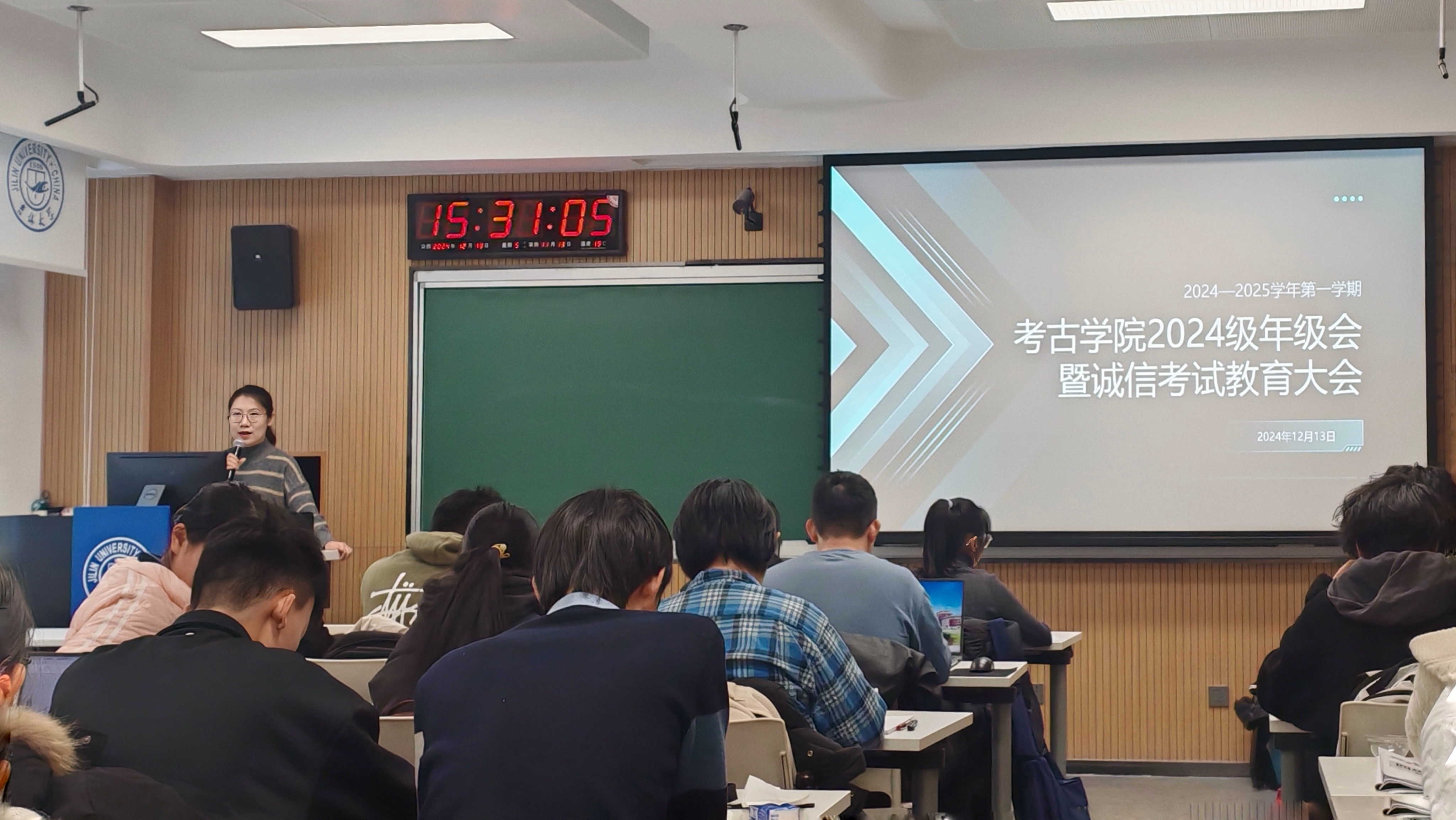 在2024年下半年英语四级考试、2024-2025学年第一学期期末考试临近之际,为进一步严肃考风考纪,树立良好学风,增强员工诚信意识,引导员工自觉遵守考试纪律,12月13日,云顶7610线路检测2024级于逸夫教学楼111教室召开年级会暨诚信考试教育大会。会议由辅导员马嘉男老师主持,2024级全体本科生参加。