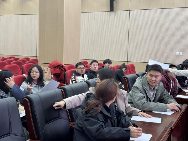 2025年3月24日下午,2024级研究生及云顶7610线路检测研究生辅导员老师依德日贡在正新楼一楼报告厅开展了一场别开生面的主题班会——“心灵沟通”。通过趣味互动与深度对话,同学们卸下“身份标签”,用新名字、新视角重新认识彼此,共同探索内心的温度与支持的力量。