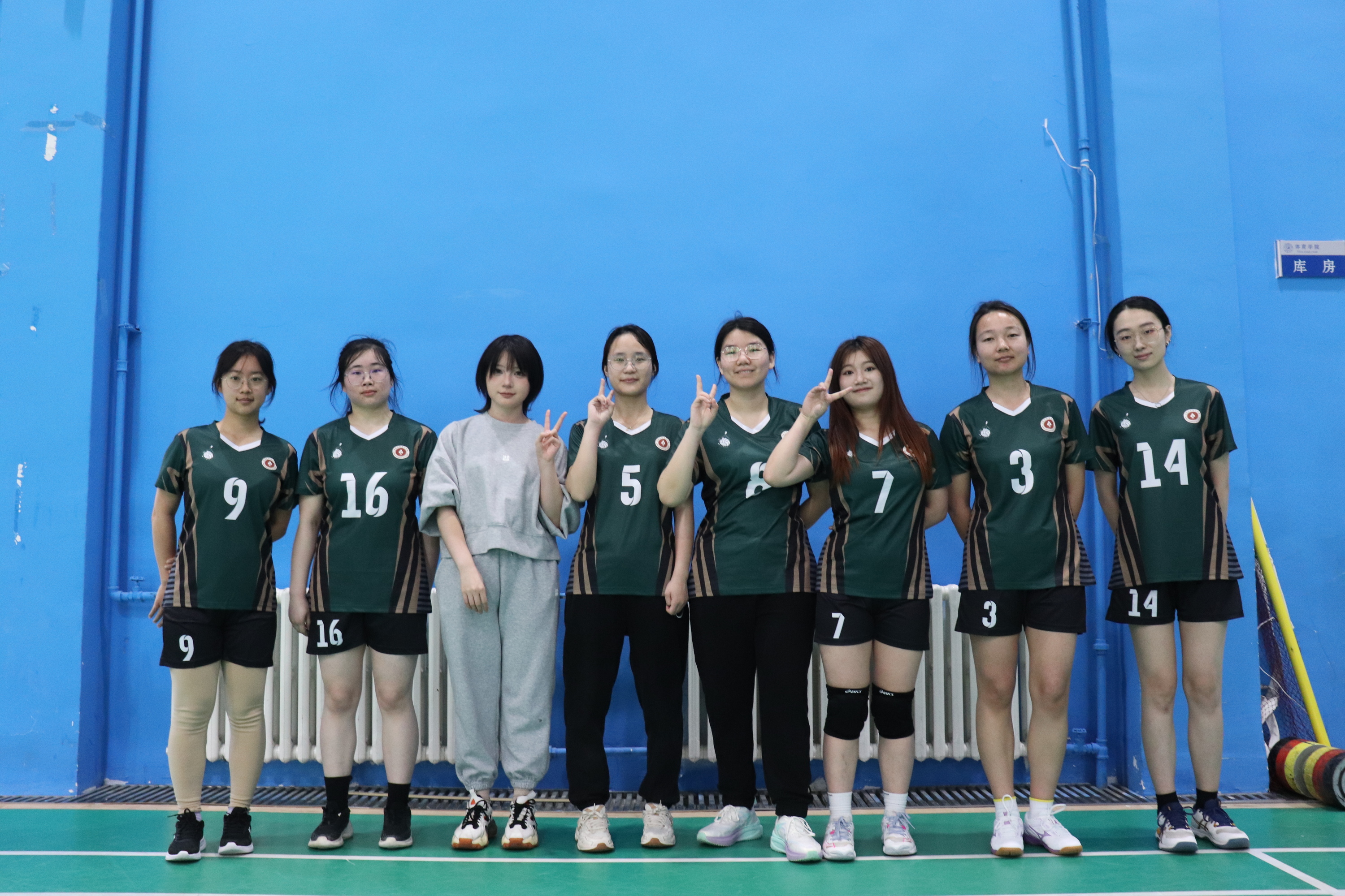 女排队员身着统一队服,在队长马悦珊指导下展开赛前热身。队员通过分组对抗、定点发球和战术演练磨合配合,展现出昂扬斗志。