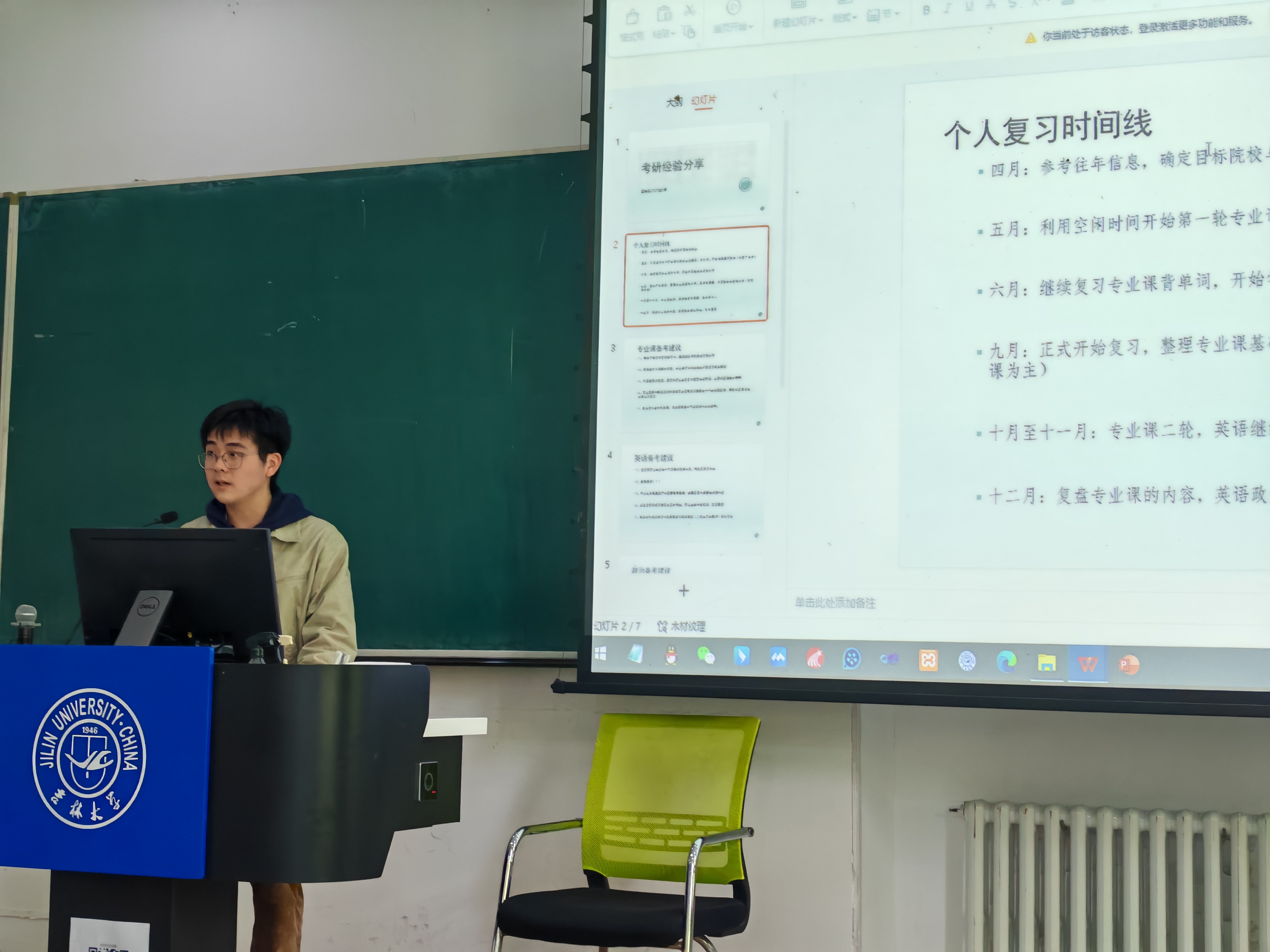 随后,同样上岸本校考古学专业的刘震宇聚焦备考策略,展示个性化日程表示例,提出拆分知识模块、建立专题题库等方法,提醒关注学科前沿动态,倡导根据个人特点调整学习节奏。刘震宇的分享图文并茂、“干货”满满,同学们纷纷拍照记录。